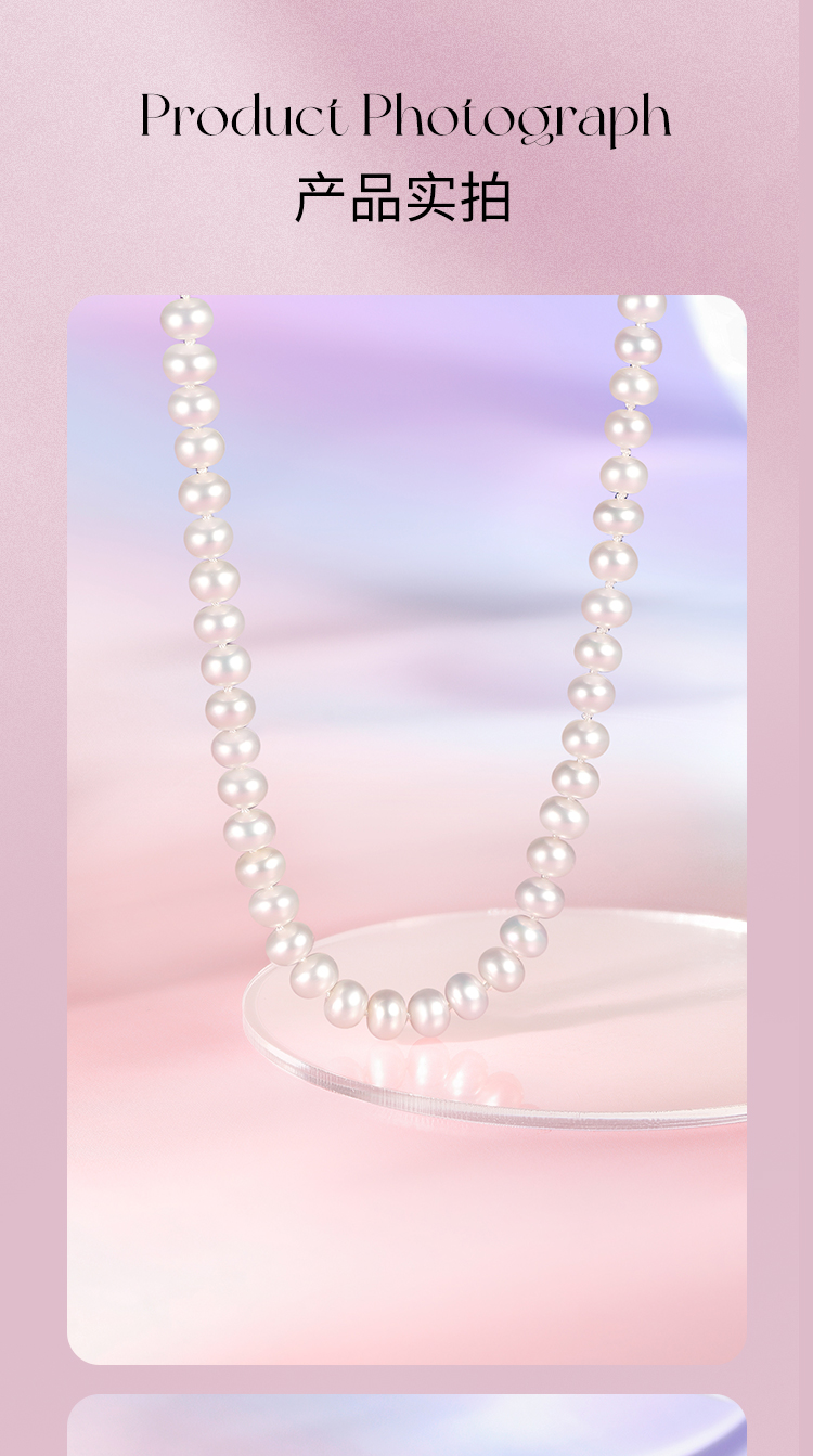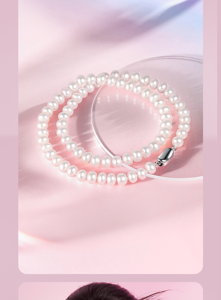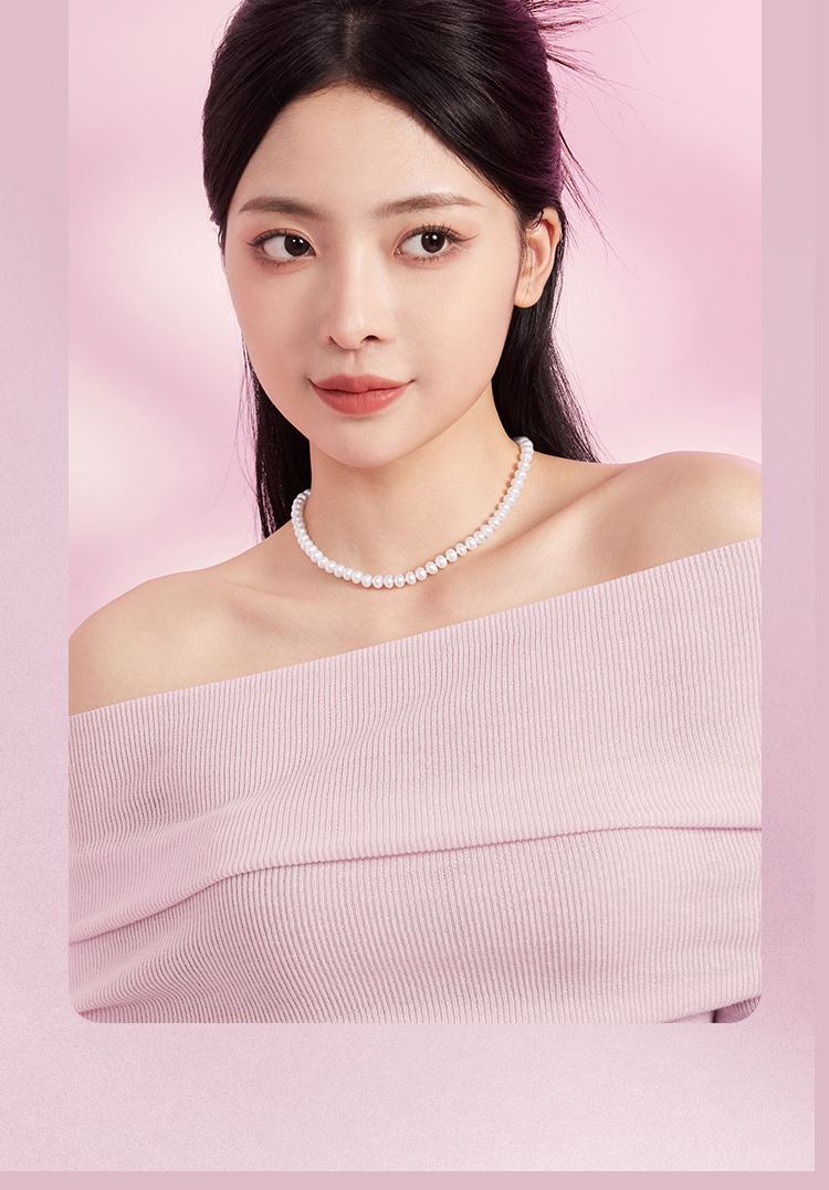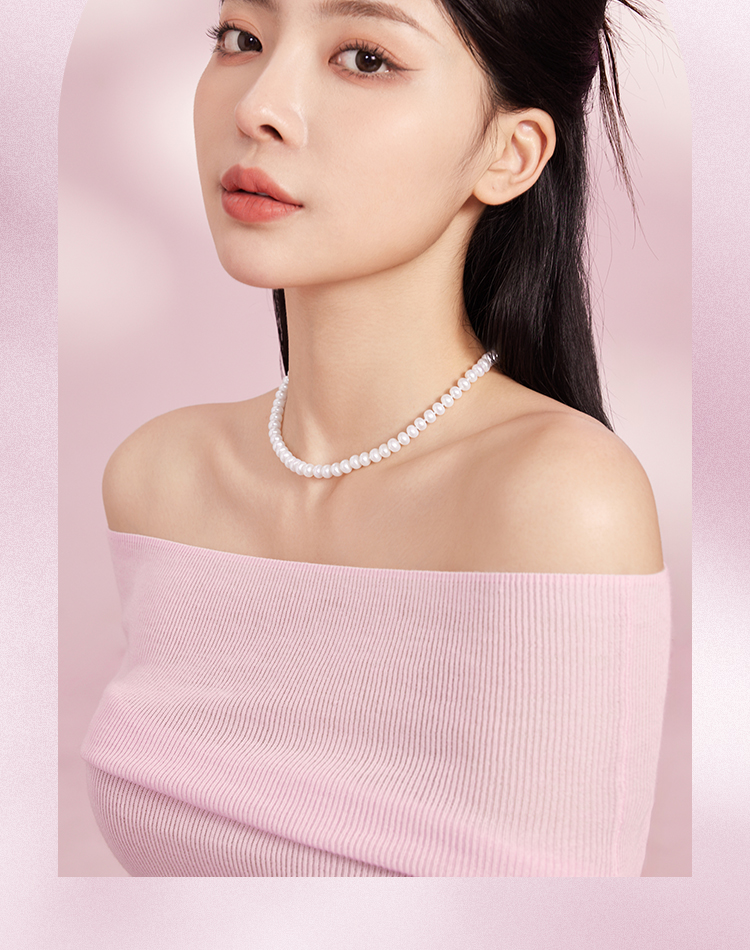 周六福S925银珍珠项链女淡水珍珠扁圆形6.5mm颈饰优雅送妈妈长辈