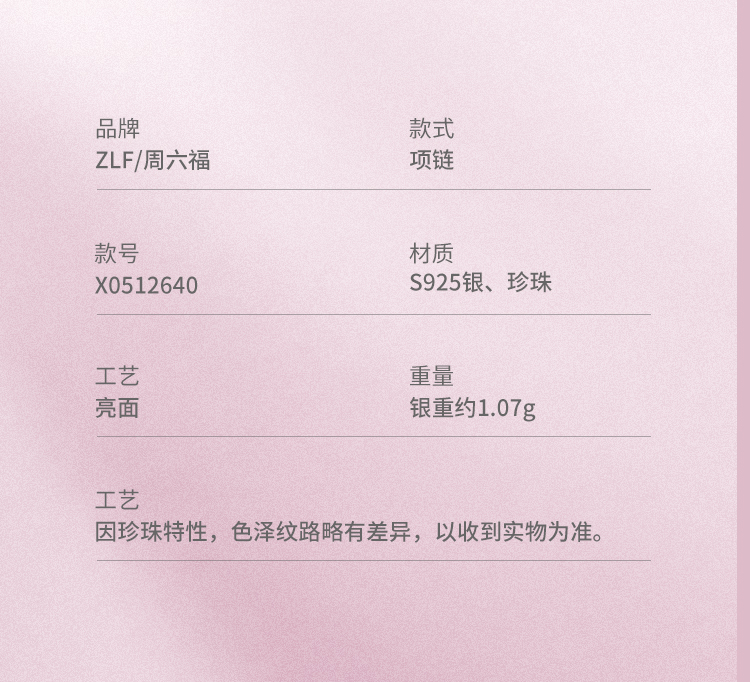 周六福S925银优雅珍珠颈饰手饰组合Z气质大方送礼正品