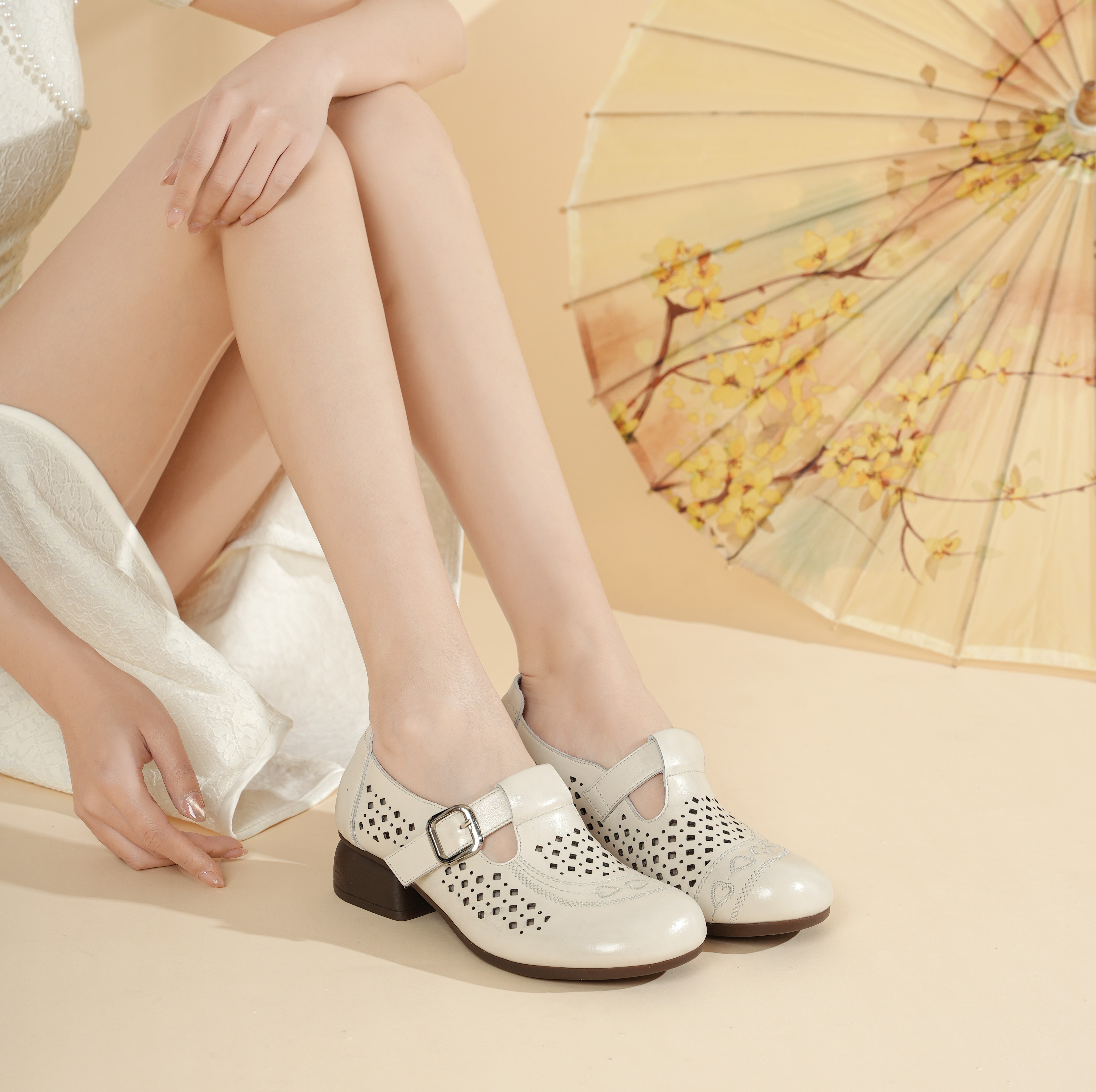 【夏季新款】西村名物2025年夏季新款舒适透气优雅百搭低跟洞洞鞋T25AH16341