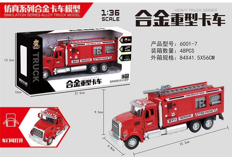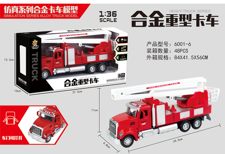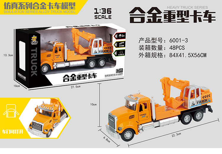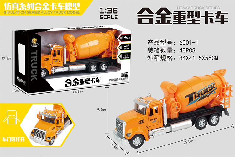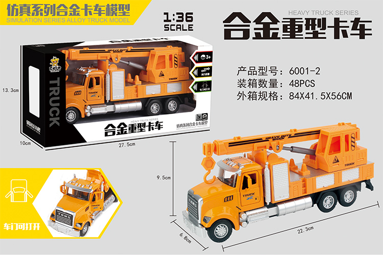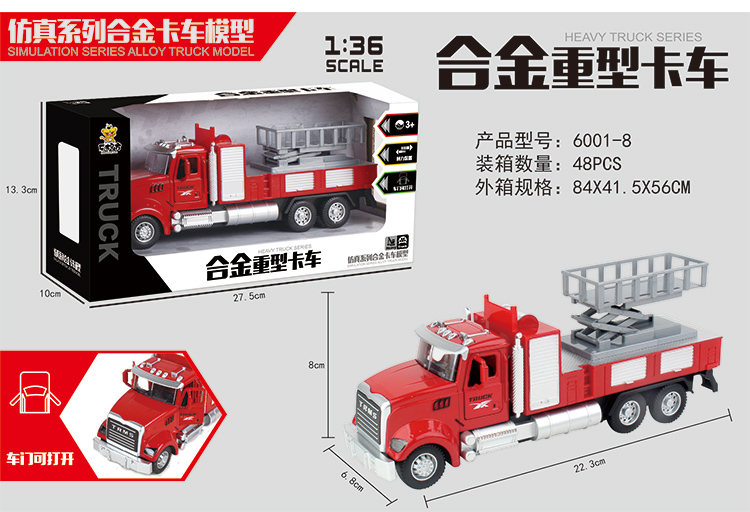 乐柠方1:36仿真合金回力工程系列车模6001