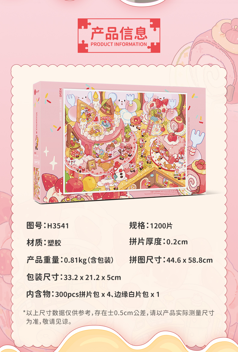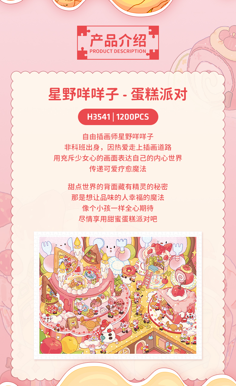 【折扣商品 不退不换】1200片 平面塑料拼图 H3541 星野咩咩子-蛋糕派对