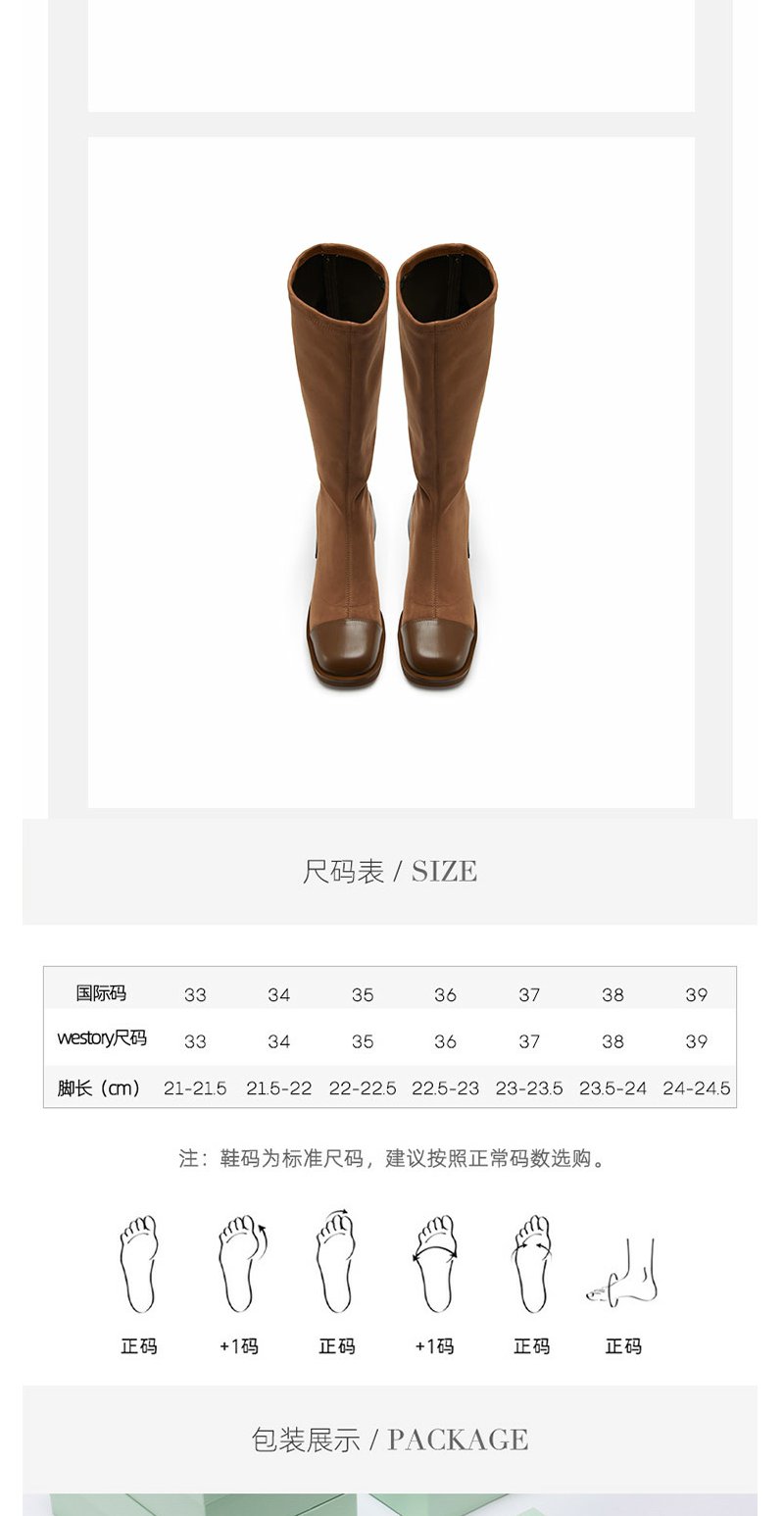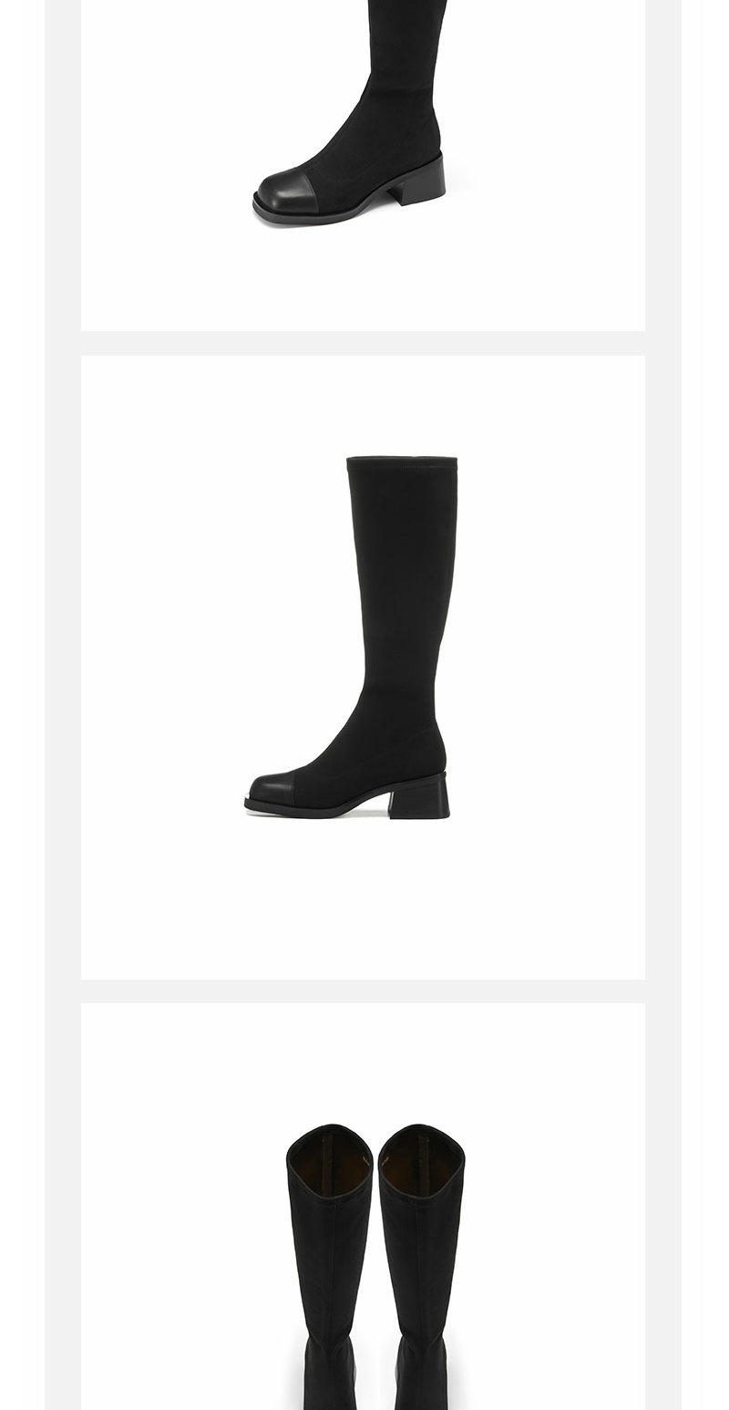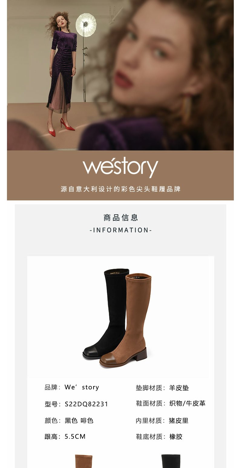 westory22年秋冬新款中筒靴弹力靴套筒圆头粗跟瘦瘦靴短靴女82231