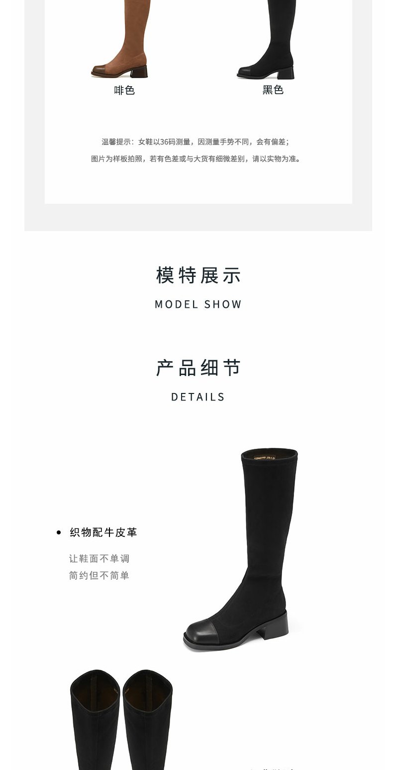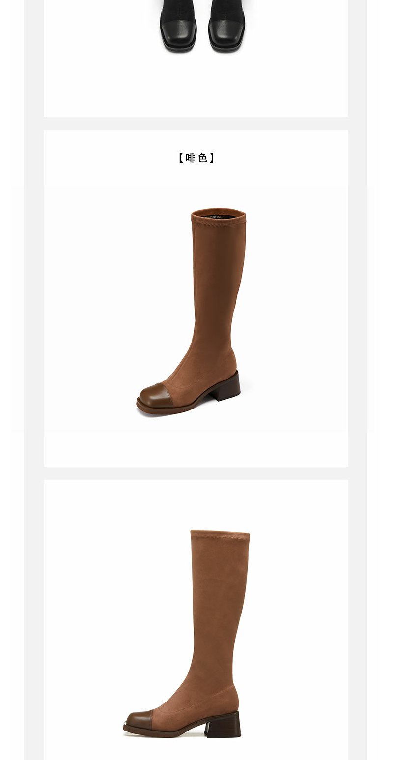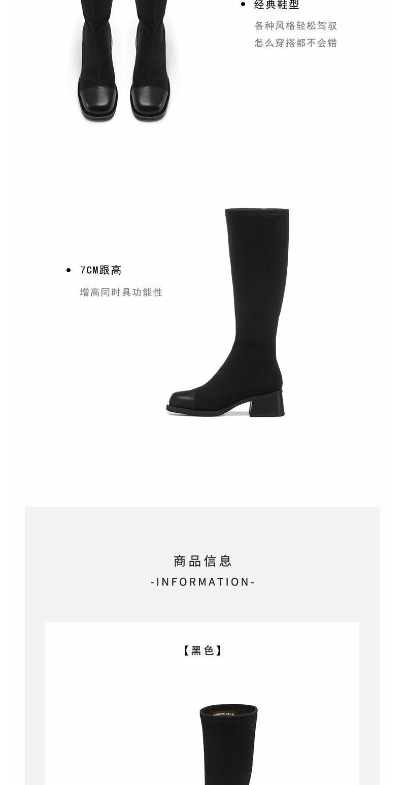 westory22年秋冬新款中筒靴弹力靴套筒圆头粗跟瘦瘦靴短靴女82231