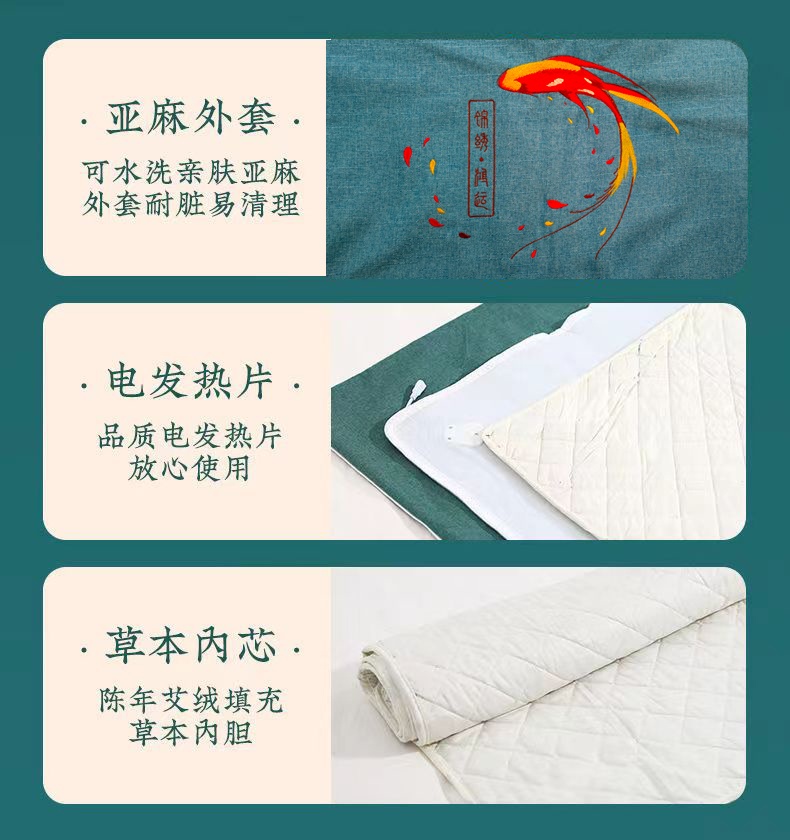 电加热艾灸毯九档控温可定时艾绒床垫加厚艾草热敷艾灸垫家用艾绒毯