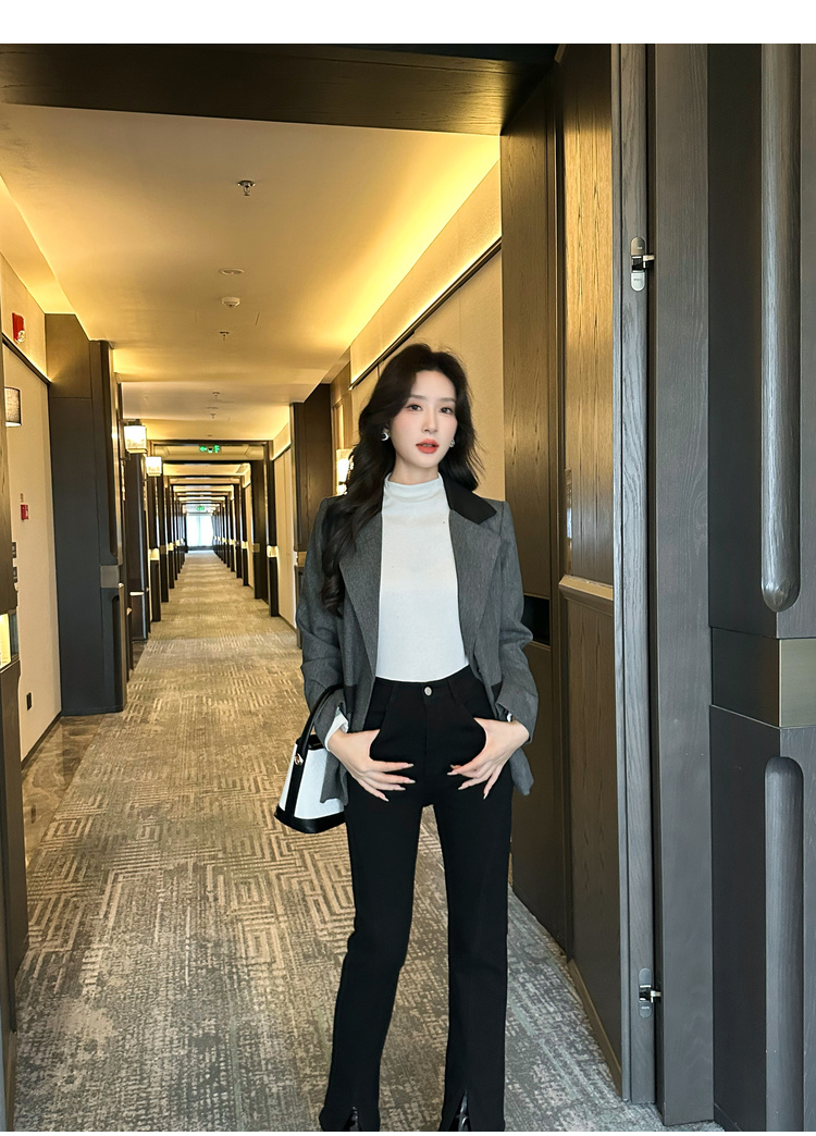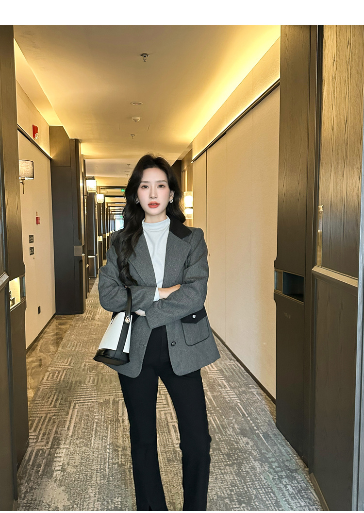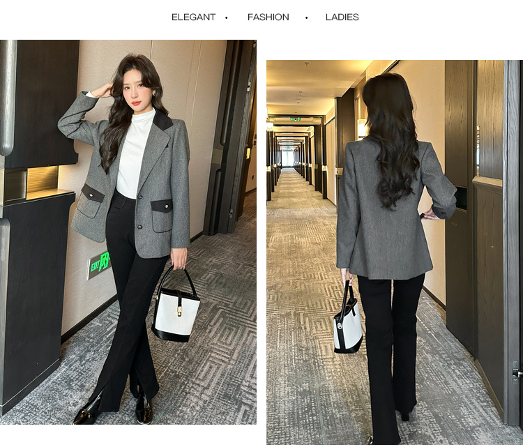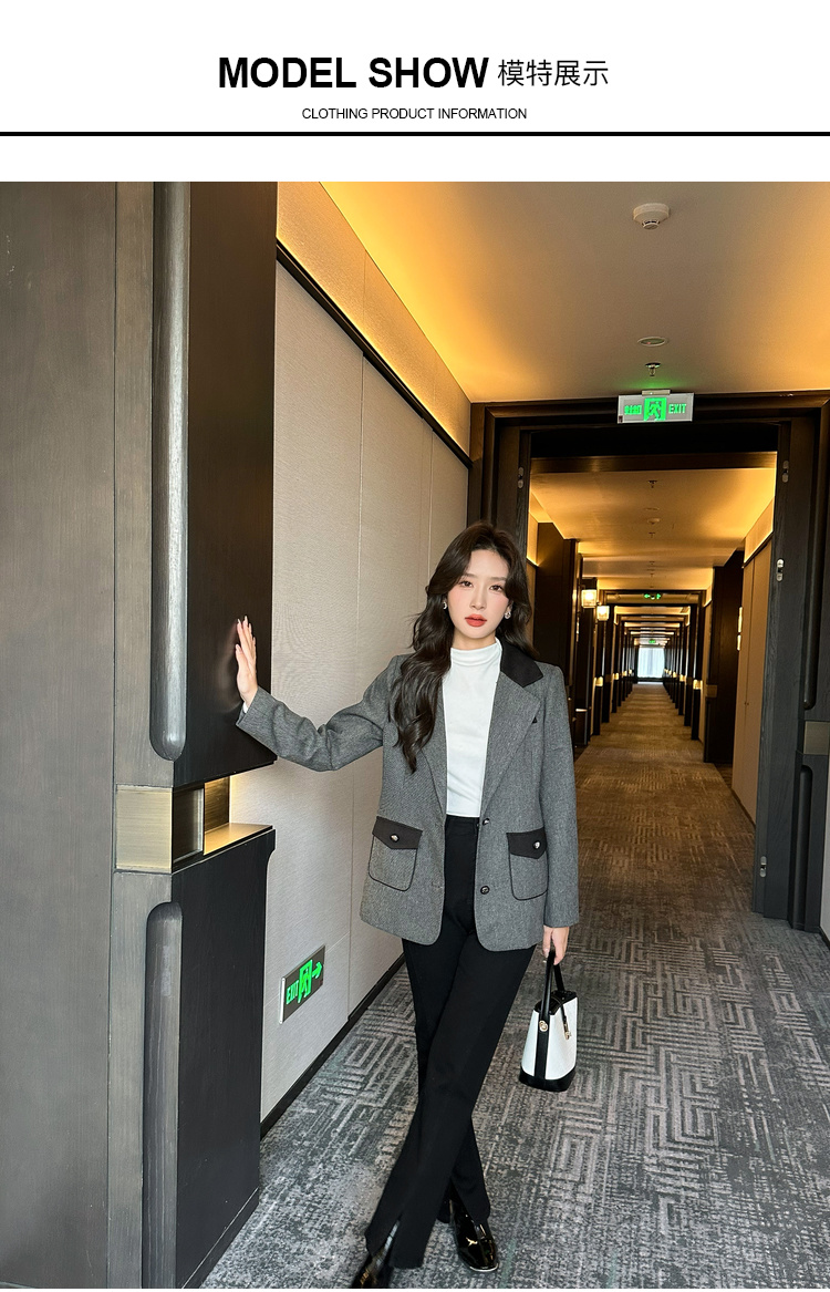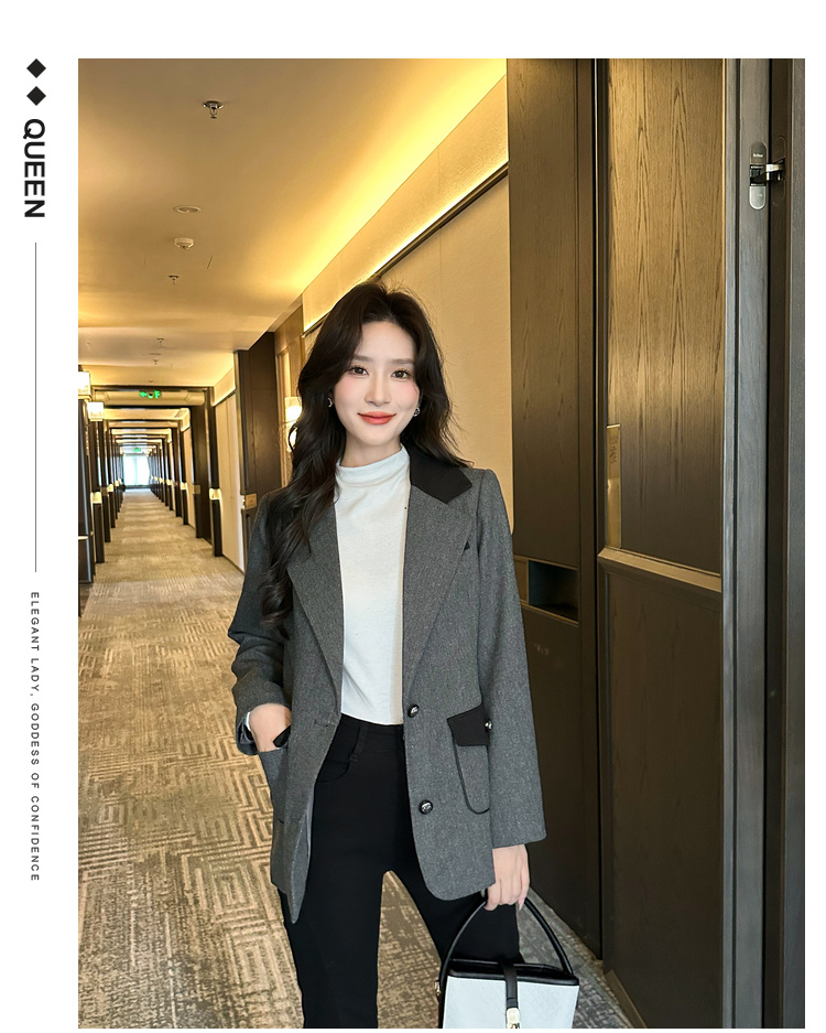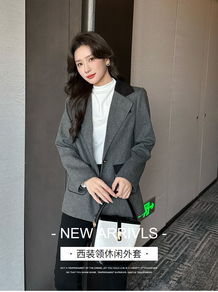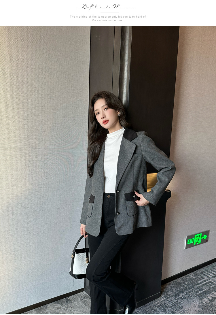 奢姿2025年秋季新款大码女装拼色戗驳领西服上衣胖妹妹休闲外套9943391660