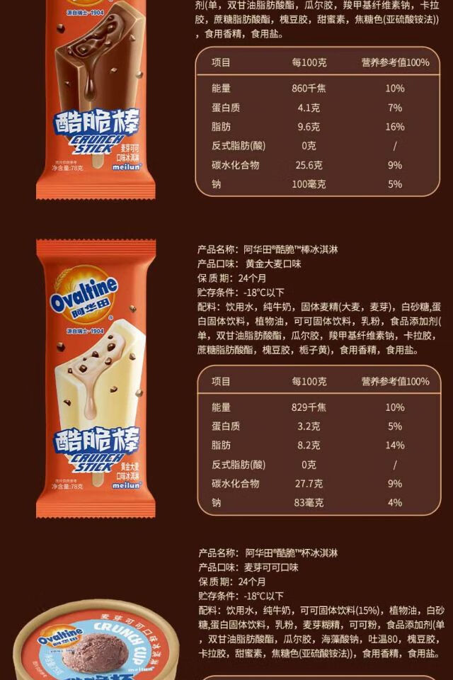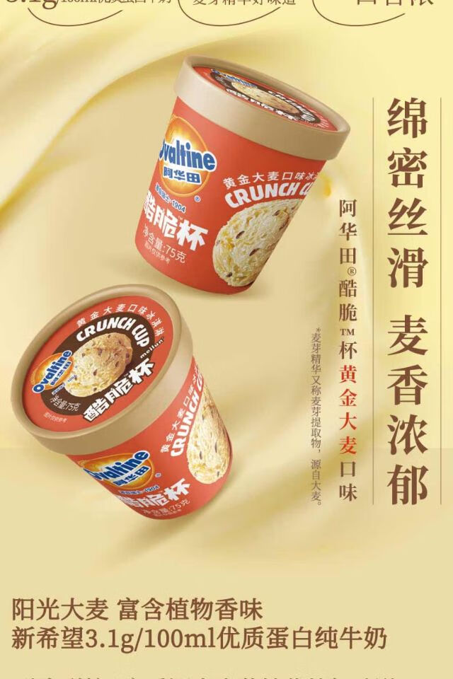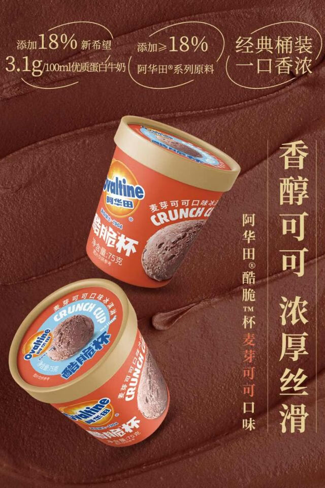阿华田酷脆杯 麦芽可可口味 黄金大麦口味 冰淇淋75g
