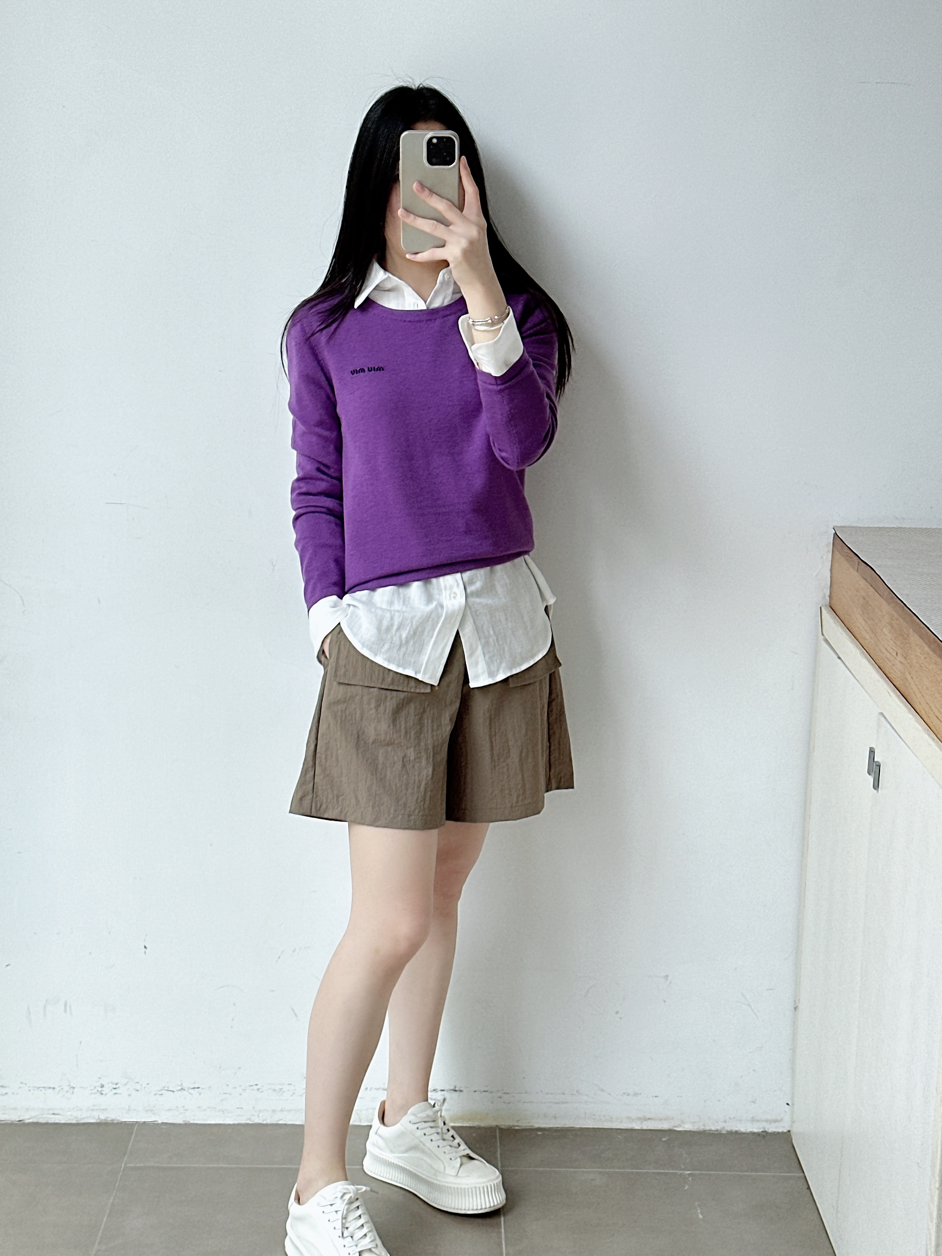 新款女装紫色圆领长袖针织衫休闲百搭上衣女