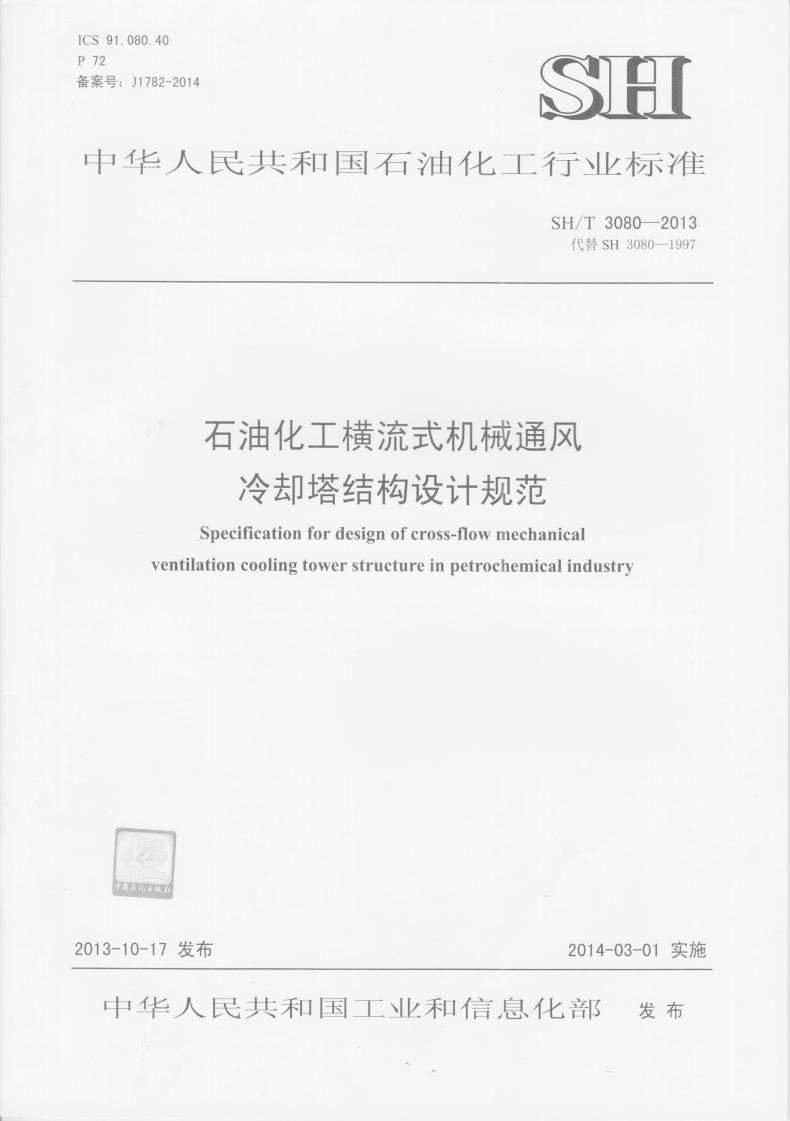 书名:SH/T 3080-2013 石油化工横流式机械通风冷却塔设计规范
