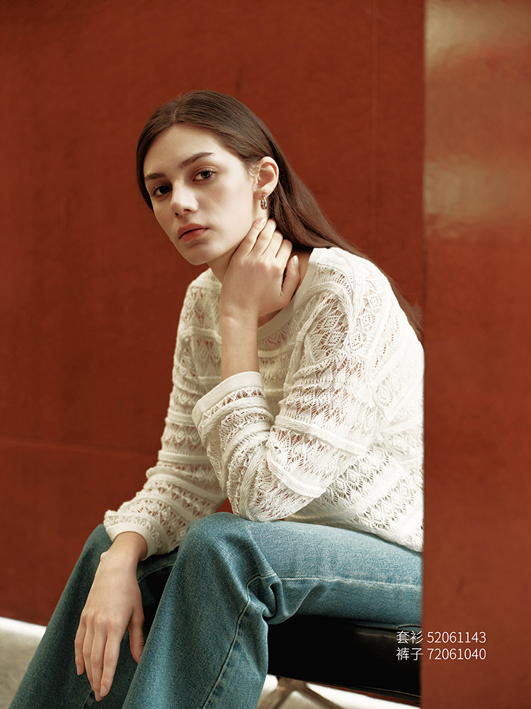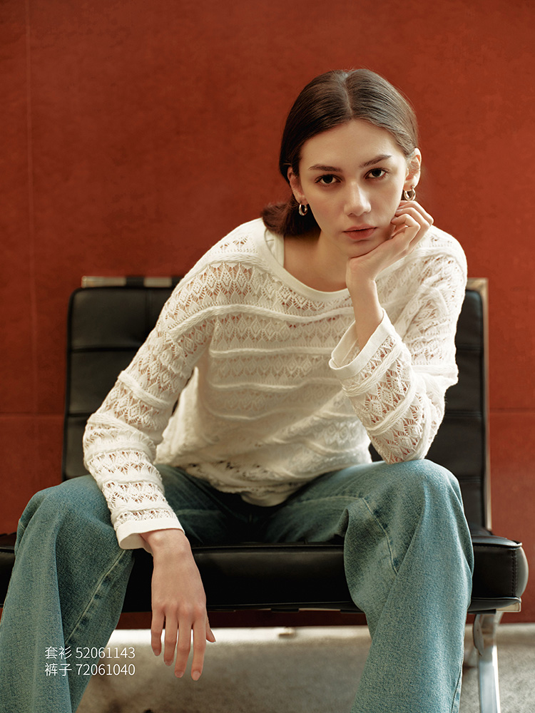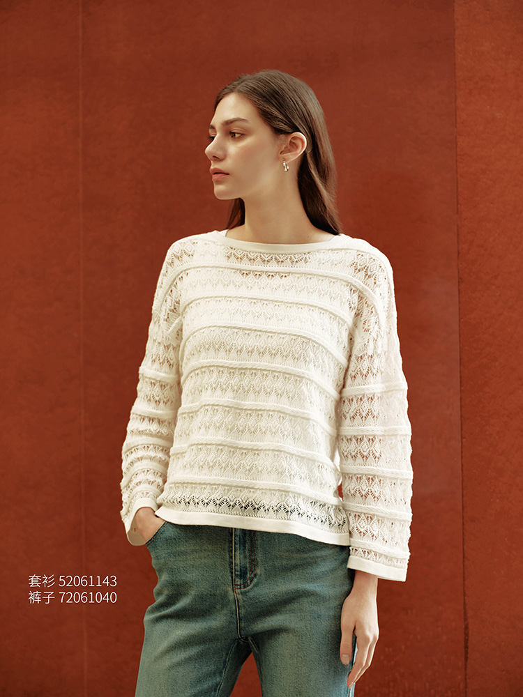 【镂空针织套衫】26年春夏新品女士棉+桑蚕丝时尚毛衣