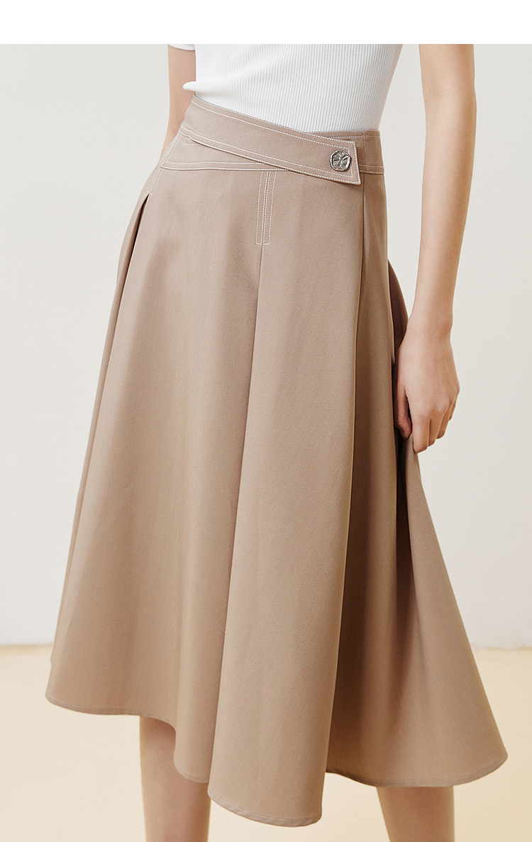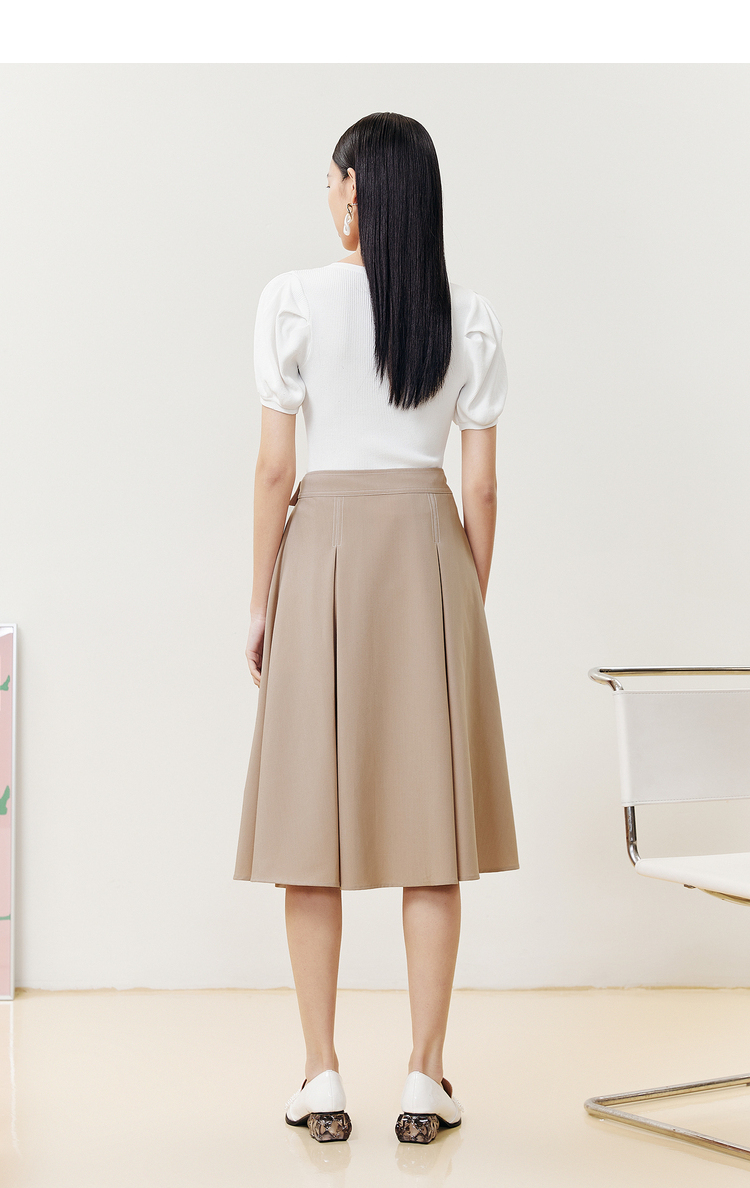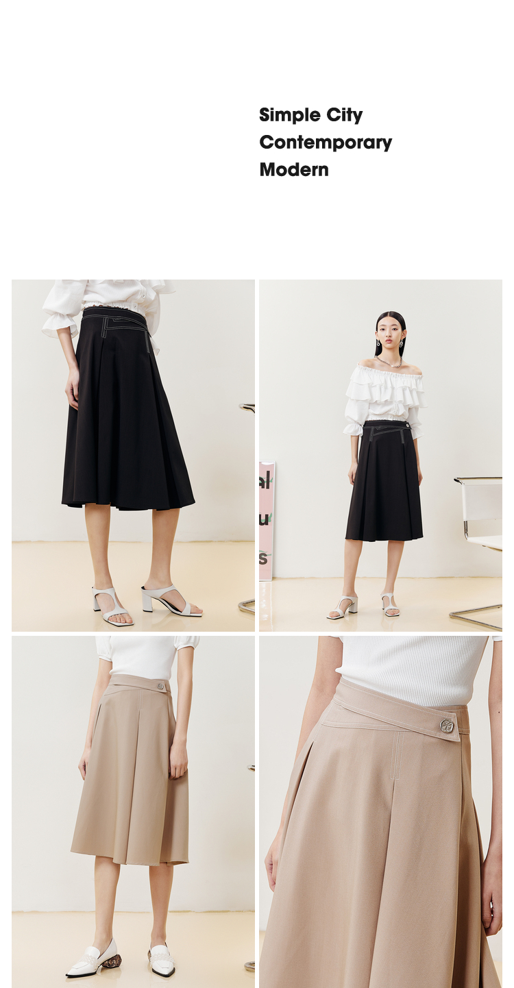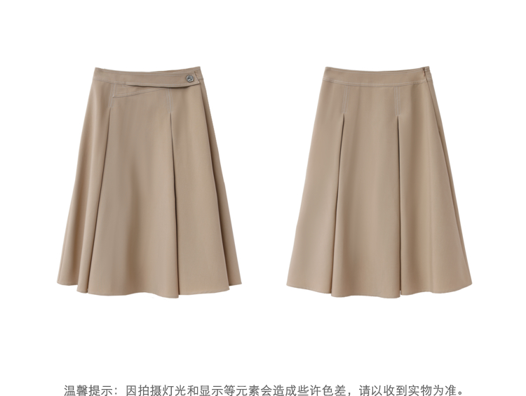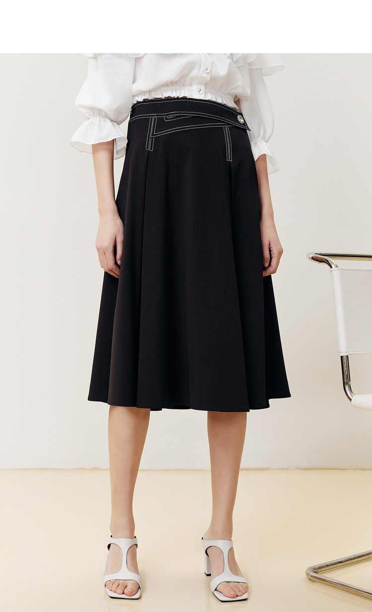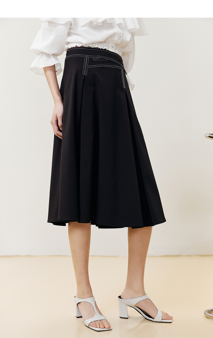 NEELLY纳俪商场同款半身裙女明线撞色不规则腰头压褶A字裙显瘦N22051E01139