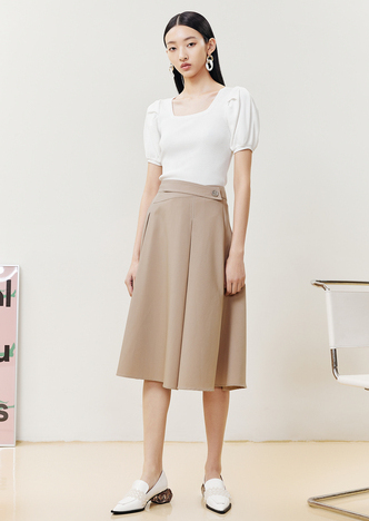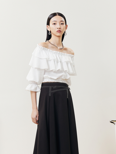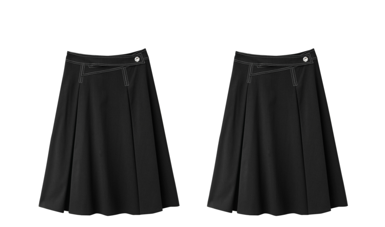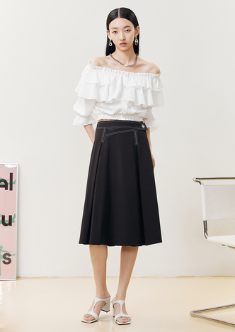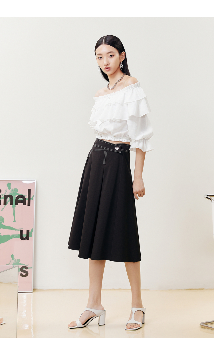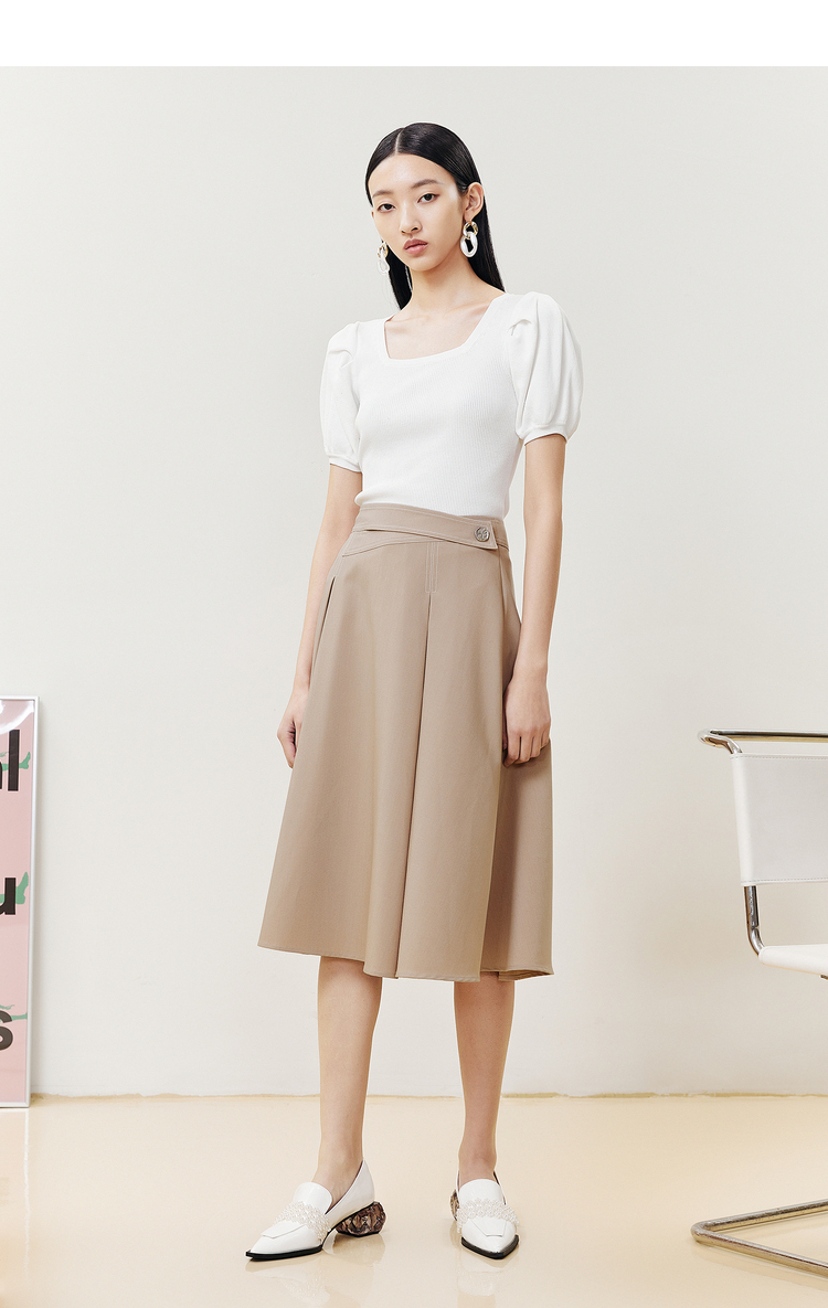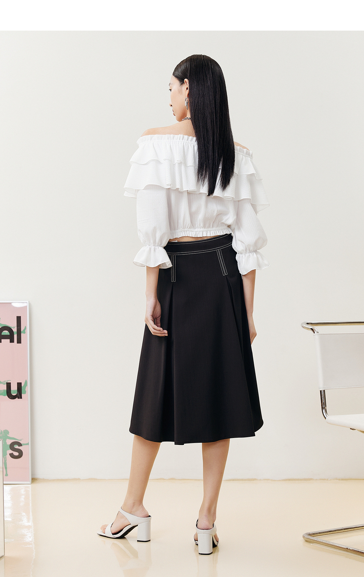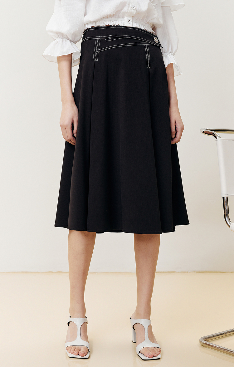 NEELLY纳俪商场同款半身裙女明线撞色不规则腰头压褶A字裙显瘦N22051E01139
