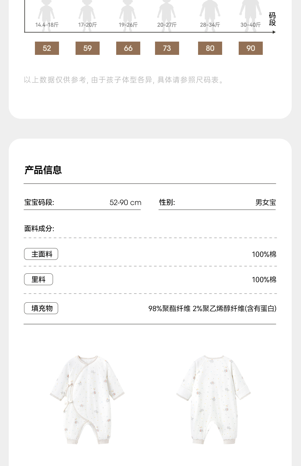 英氏新生儿连体衣秋冬夹棉大豆棉哈衣YLHAJ3Q022A YLAAJ3Q022A