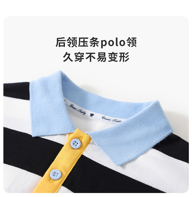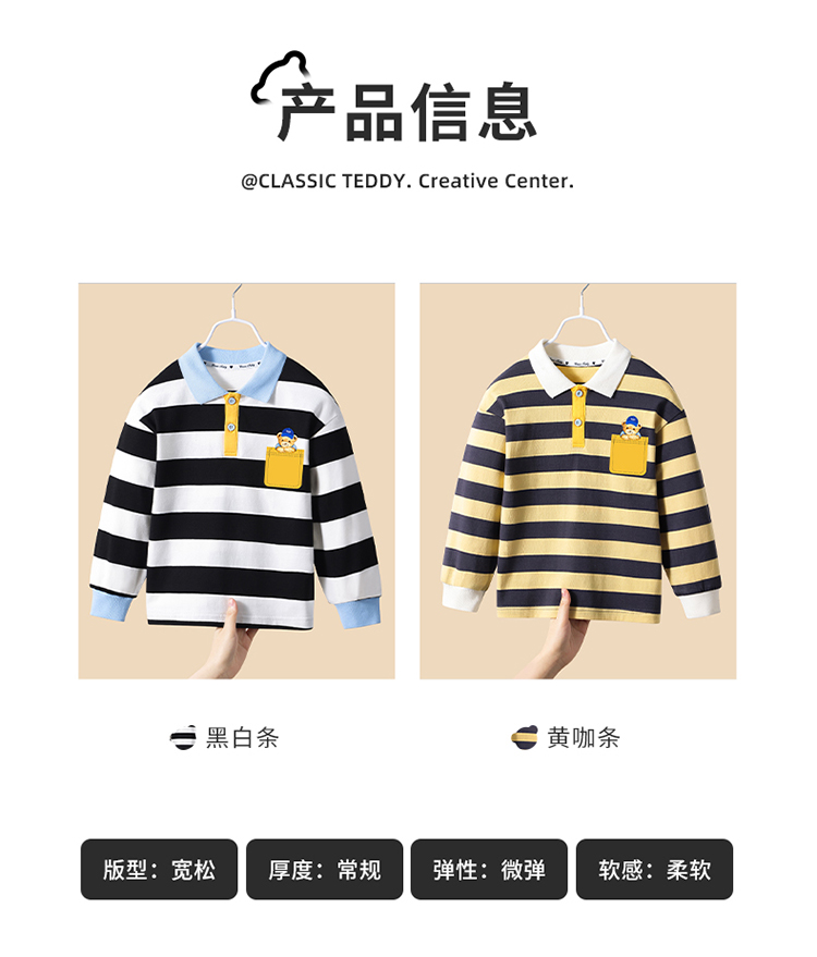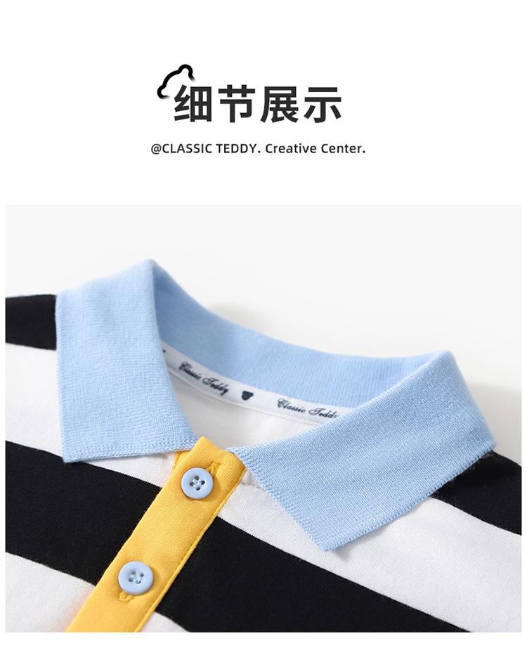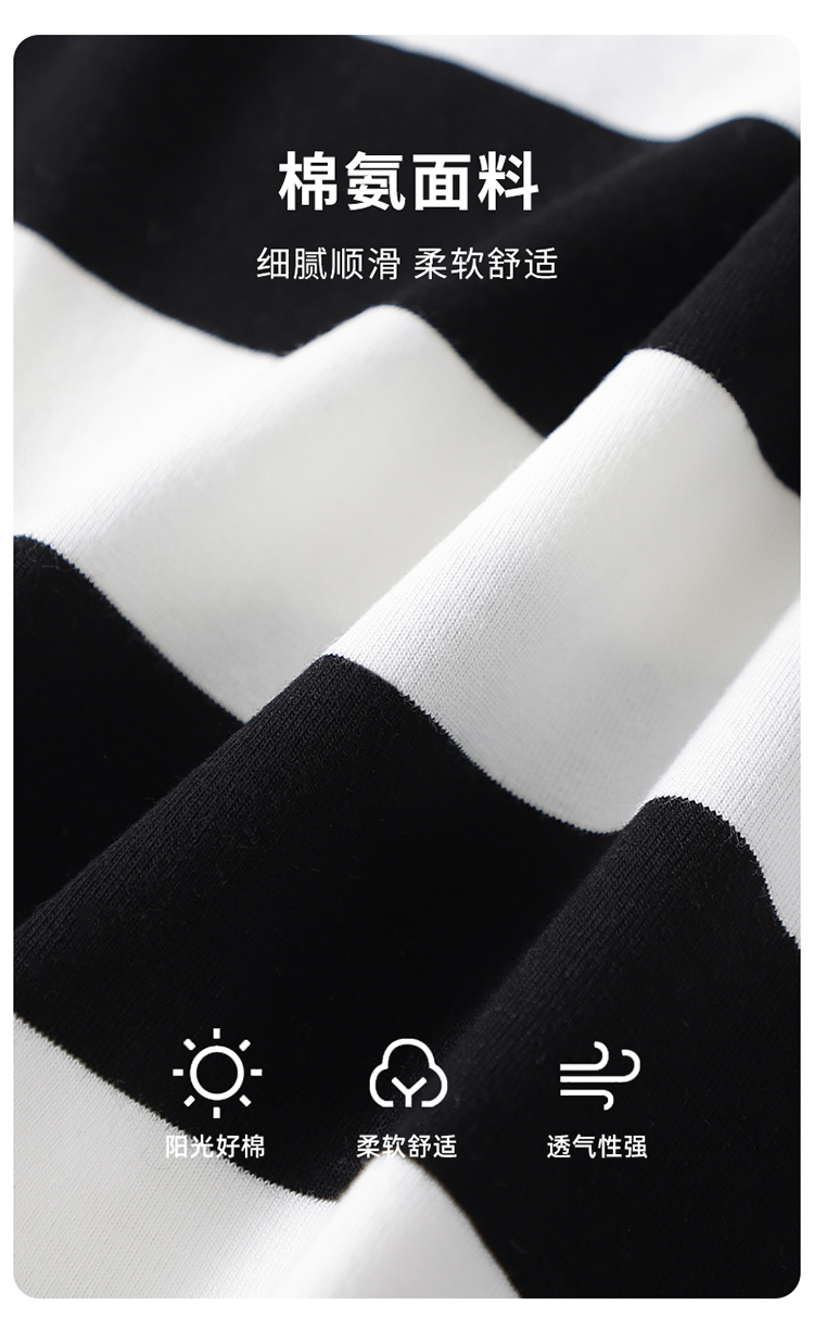 面料成分:黄咖条:95.1%棉4.9%氨纶 黑白条:95%棉5%氨纶(配料除外)