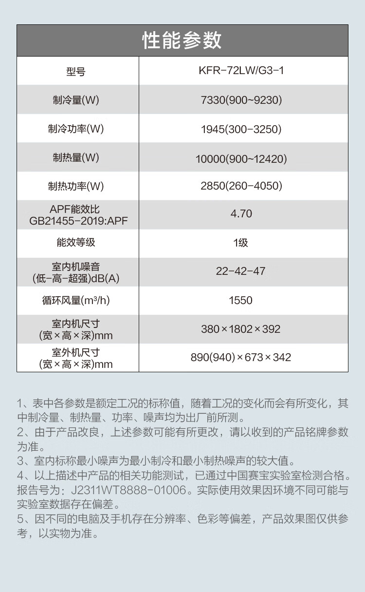 美的3P一级变频空调KFR-72LW/G3-1(仅限湖南省内)