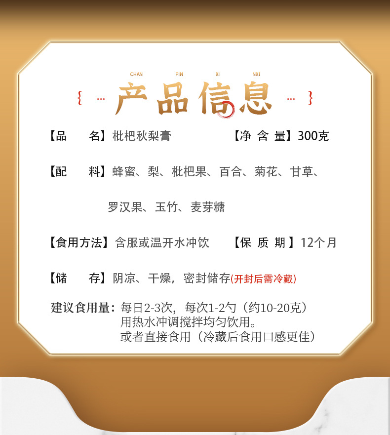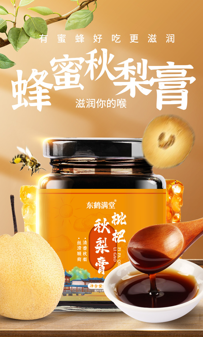 自营(泰利嘉)- 枇杷秋梨膏 古法制秋梨膏冰糖雪梨膏老人肺润纯梨膏蜂蜜枇杷清润 300g×4罐