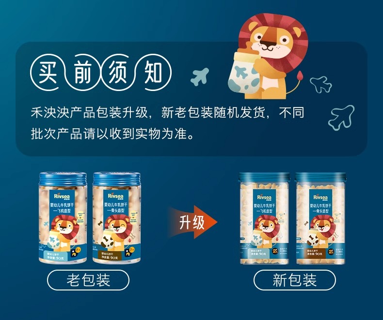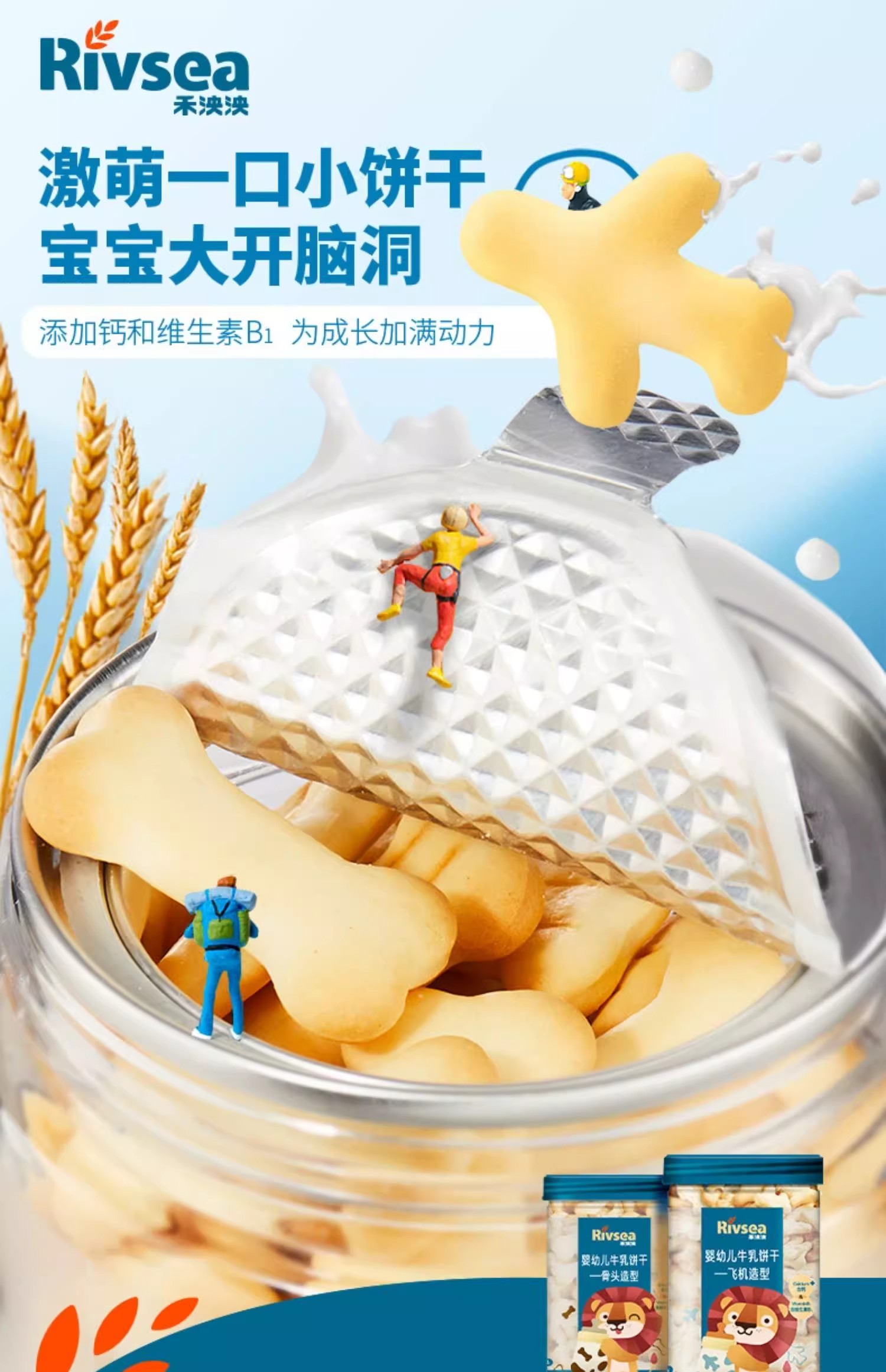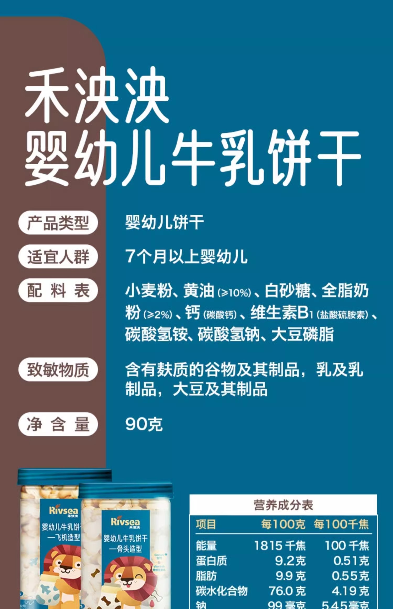 Rivsea禾泱泱 幼儿牛乳饼干宝宝零食 婴幼儿辅食飞机骨头造型90g 1岁+