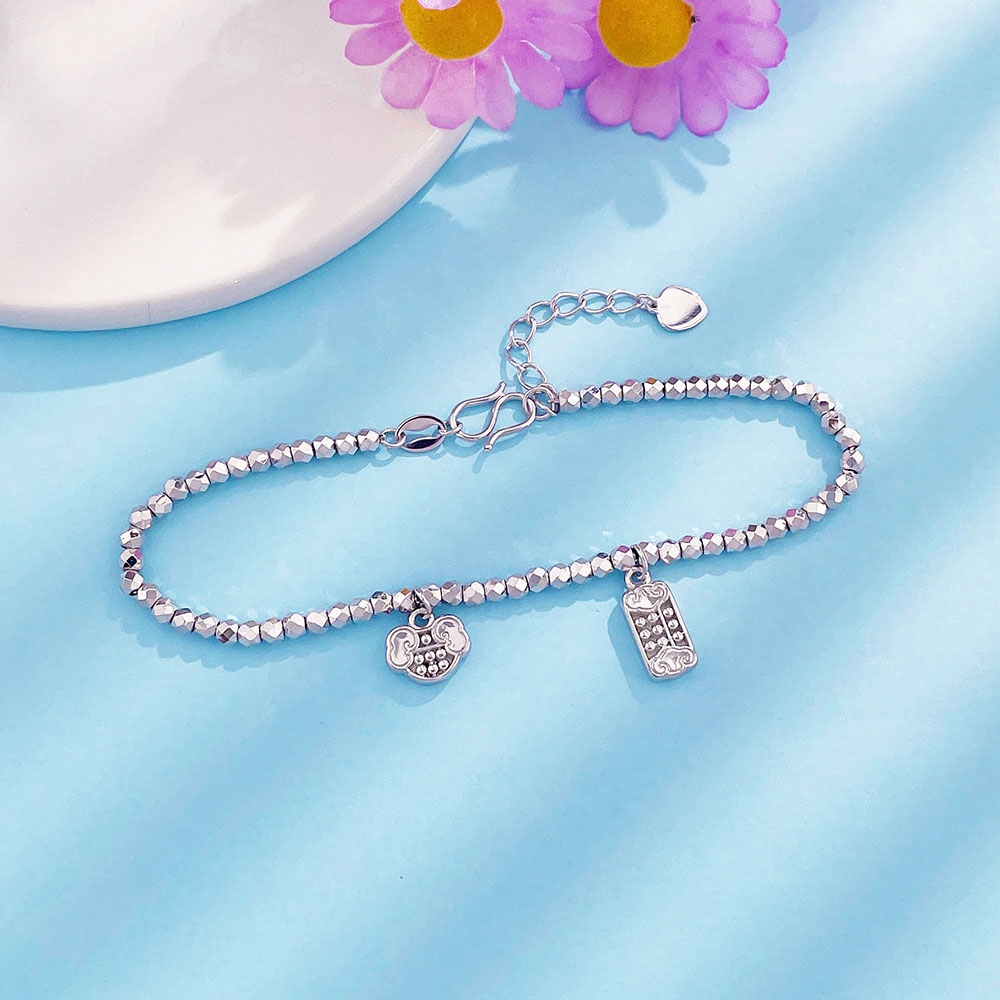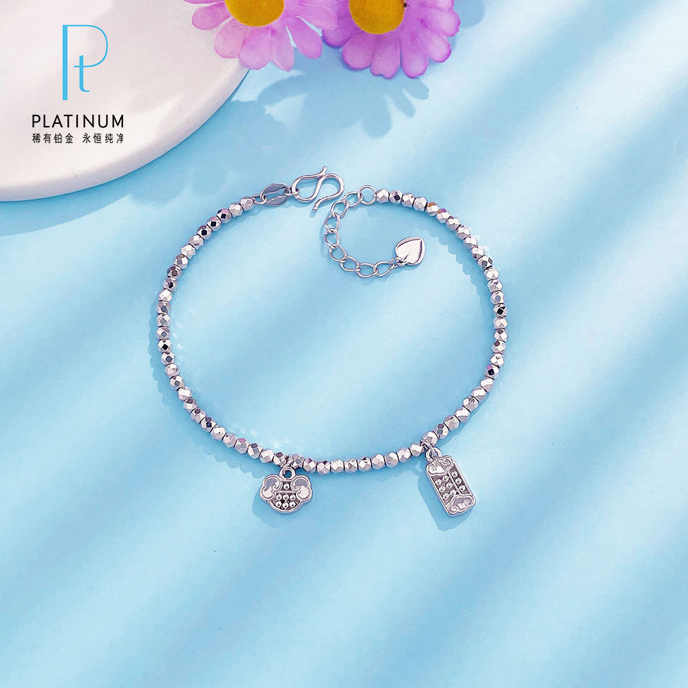 【限时8.8折】【线上铂金馆】PT950 #招财纳福 #复古风 【国际铂金协会】铂金镂空如意算盘平安锁包招财如意算盘吊饰蹦迪珠调节手链(BSL00225)预售产品下单后不退款不退货不换货不补差价)