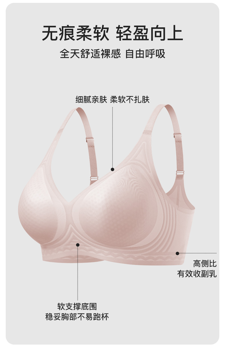 I'd爱帝轻薄无痕光面文胸防滑侧翼定型聚拢内衣