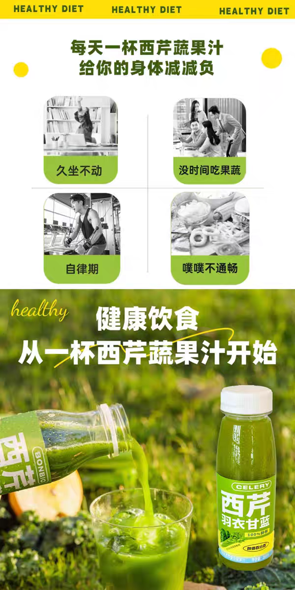 【买10送1】HPP100%西芹羽衣甘蓝果蔬汁