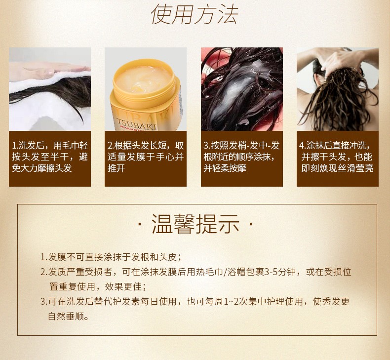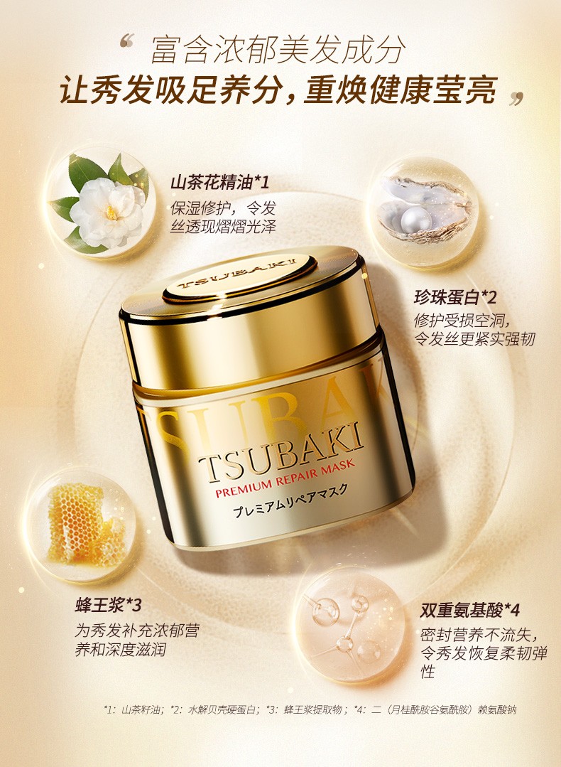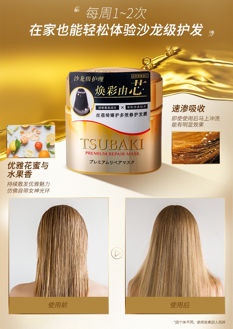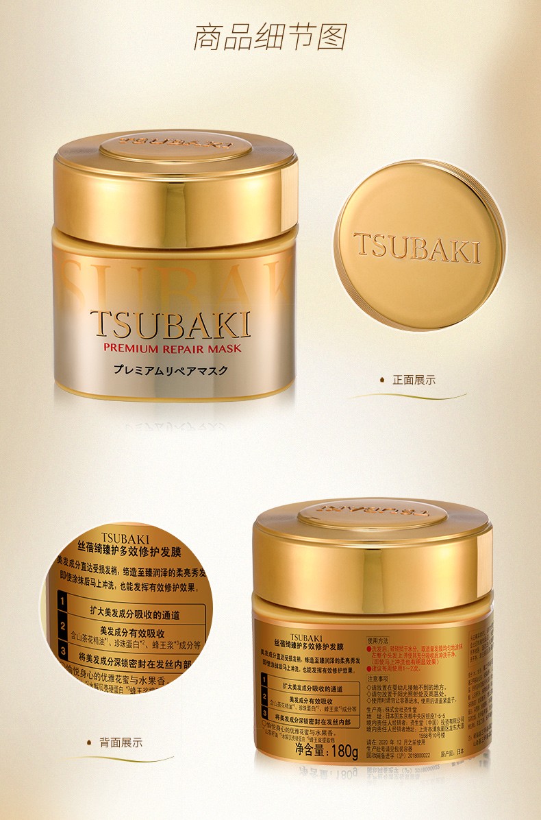 【保税仓】TSUBAKI/丝蓓绮金色高渗透滋养受损修复发膜180g/罐