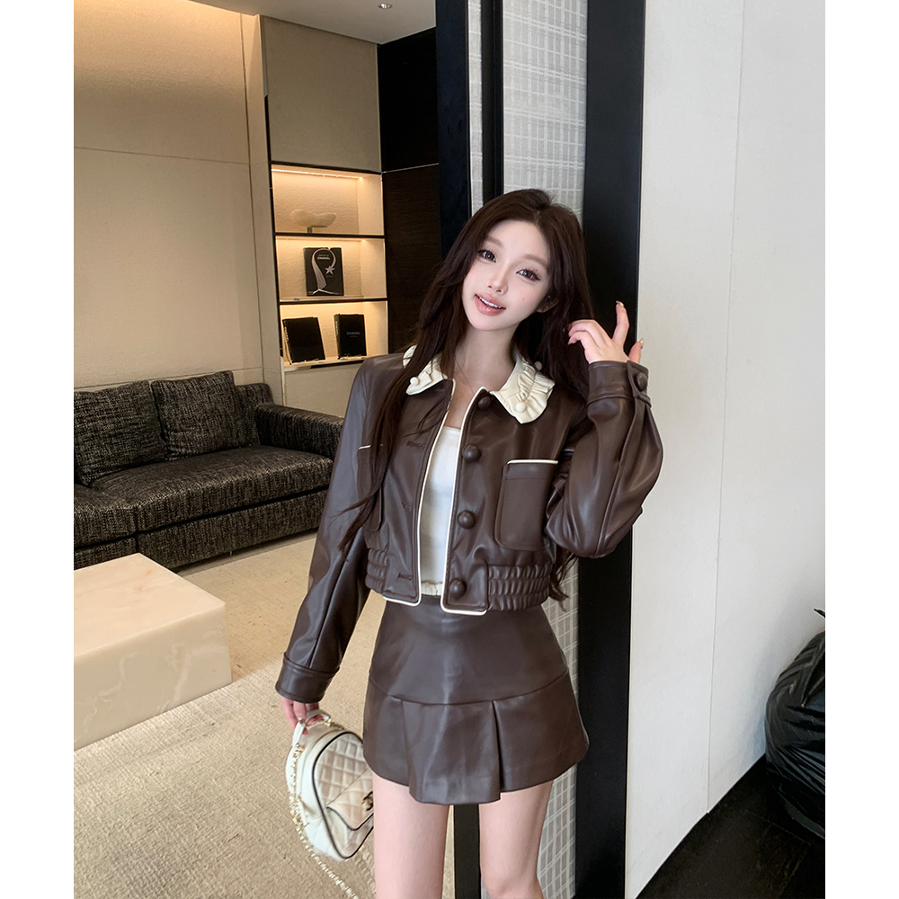 LINCHAOZHANG 【洋小圈】LW250110短款皮外套 LQ250099 皮半裙