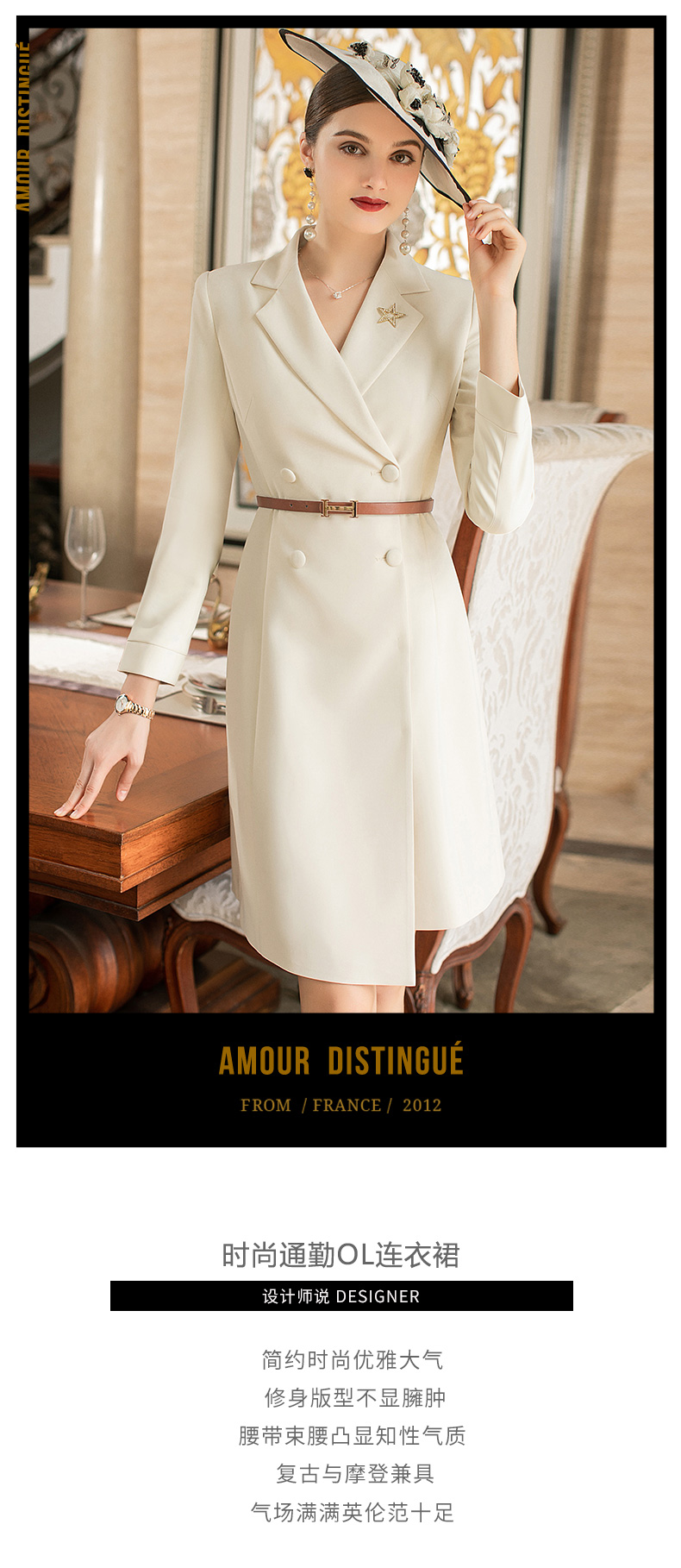 IWY/杏色主持人正装女西装连衣裙高端质感米白色西服裙子工作服职Q824
