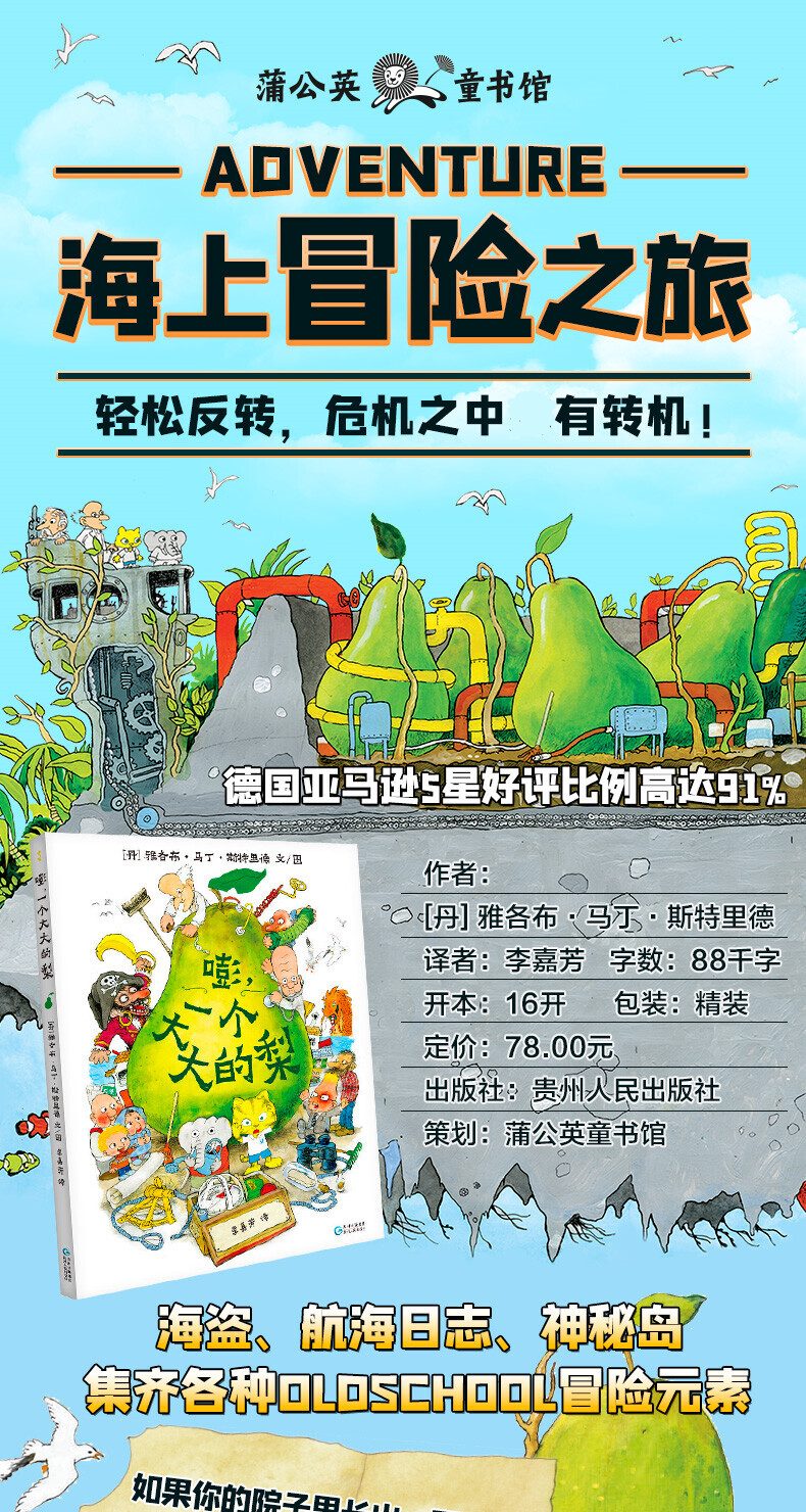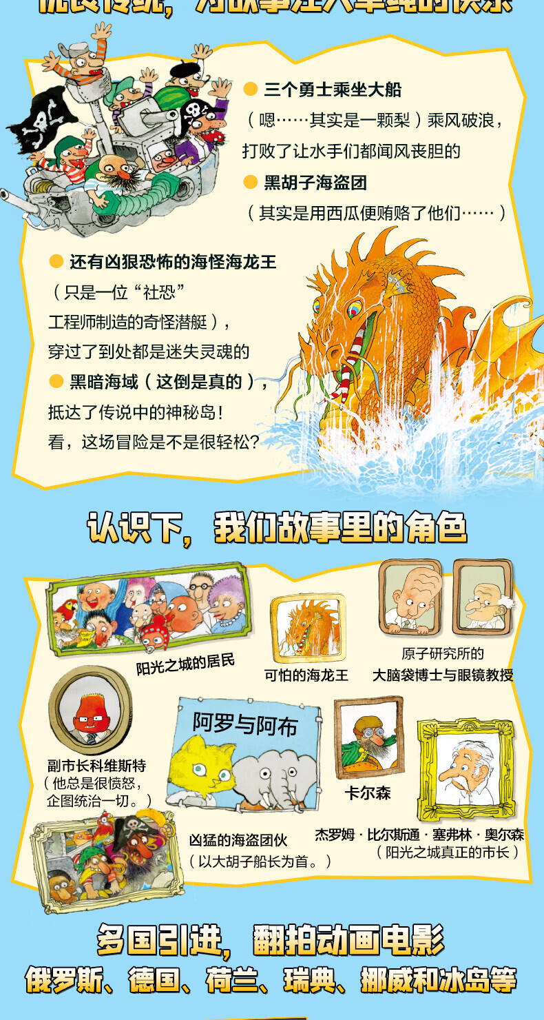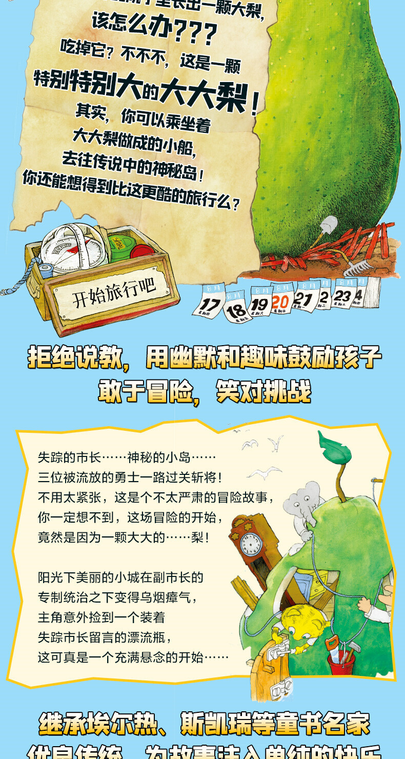 失踪的市长……神秘的小岛……三位被流放的勇士一路过关斩将!不用太紧张,这是个不太严肃的冒险故事,你一定想不到,这场冒险的开始,竟然是因为一颗大大的……梨!阳光下美丽的小城在副市长的专制统治之下变得乌烟瘴气,主角意外捡到一个装着失踪市长留言的漂流瓶,这可真是一个充满悬念的开始……三个勇士乘坐大船(嗯……其实是一颗梨)乘风破浪,打败了让水手们都闻风丧胆的黑胡子海盗团(其实是用西瓜便贿赂了他们……),还有凶狠恐怖的海怪海龙王(只是一位“社恐”工程师制造的奇怪潜艇),穿过了到处都是迷失灵魂的黑暗海域(这倒是真的),抵达了传说中的神秘岛!看,这场冒险是不是很轻松?