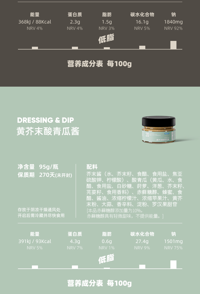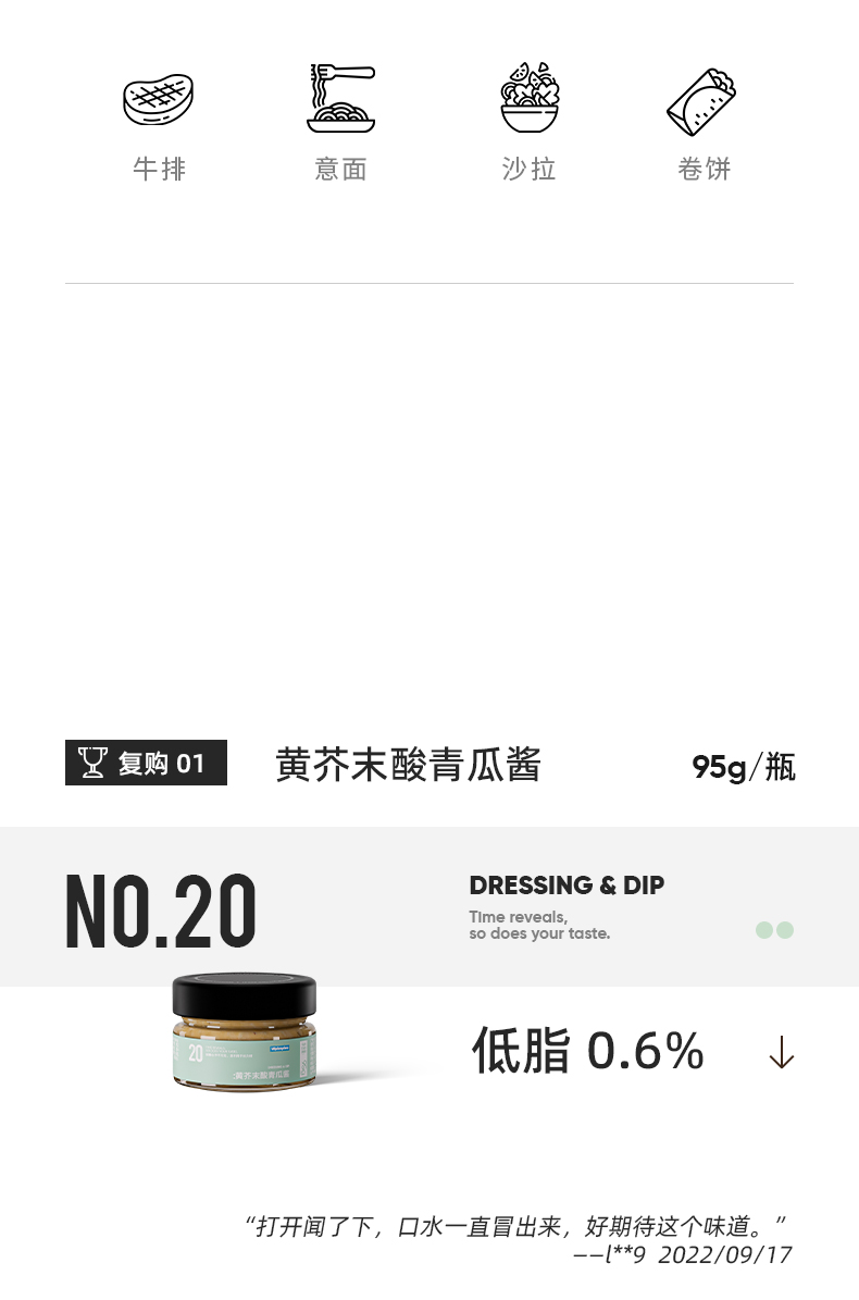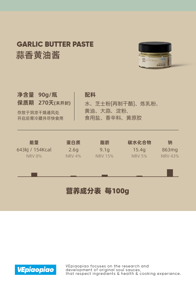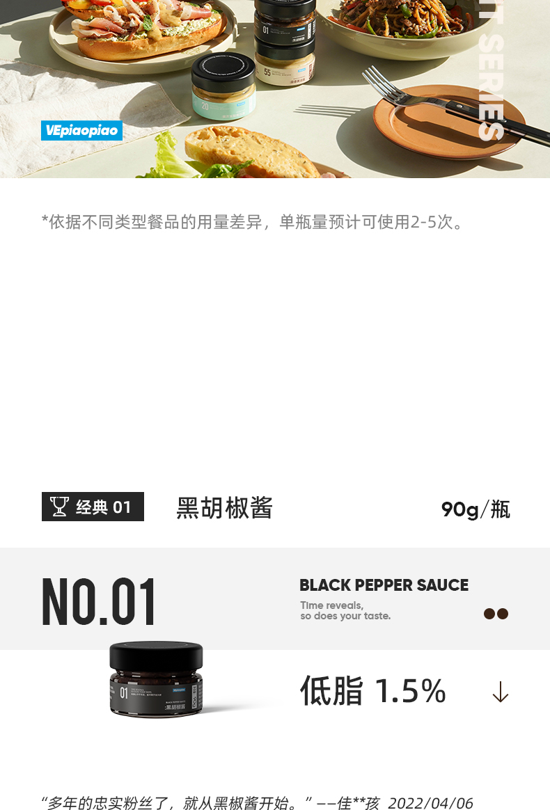 VEpiaopiao 蒜香黄油酱/黑胡椒酱/低脂黄芥末酸青瓜酱【轻享装】
