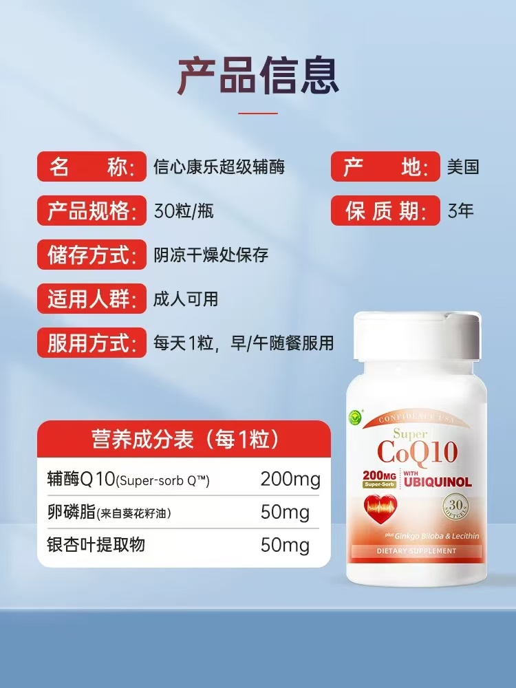 美国信心药业超级辅酶200mg复合软胶囊 30粒/瓶