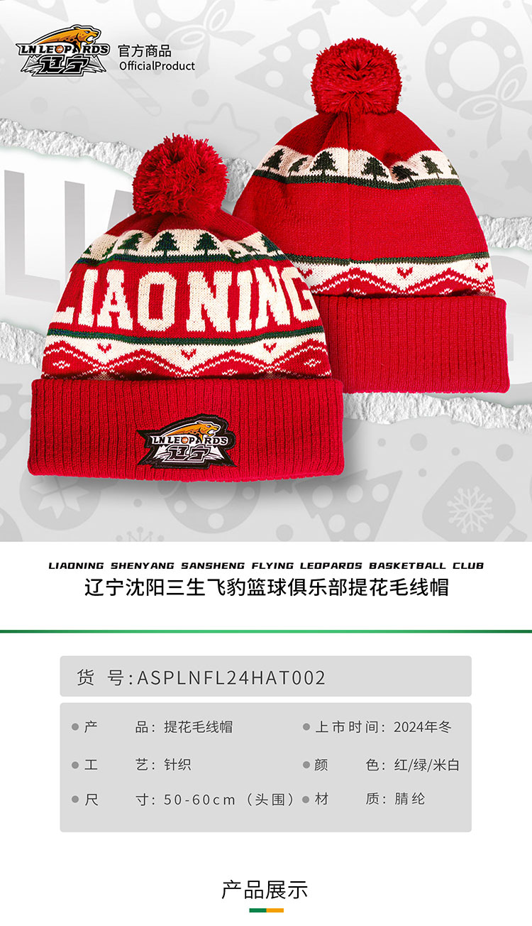 【官方正版】辽宁飞豹男篮 | 复古提花毛线帽球迷节日氛围保暖