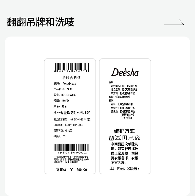 笛莎Deehsha 童装女童外套2024冬季新款A字版型外套