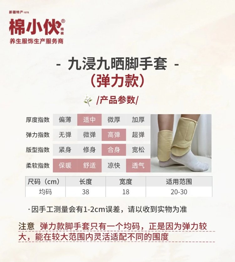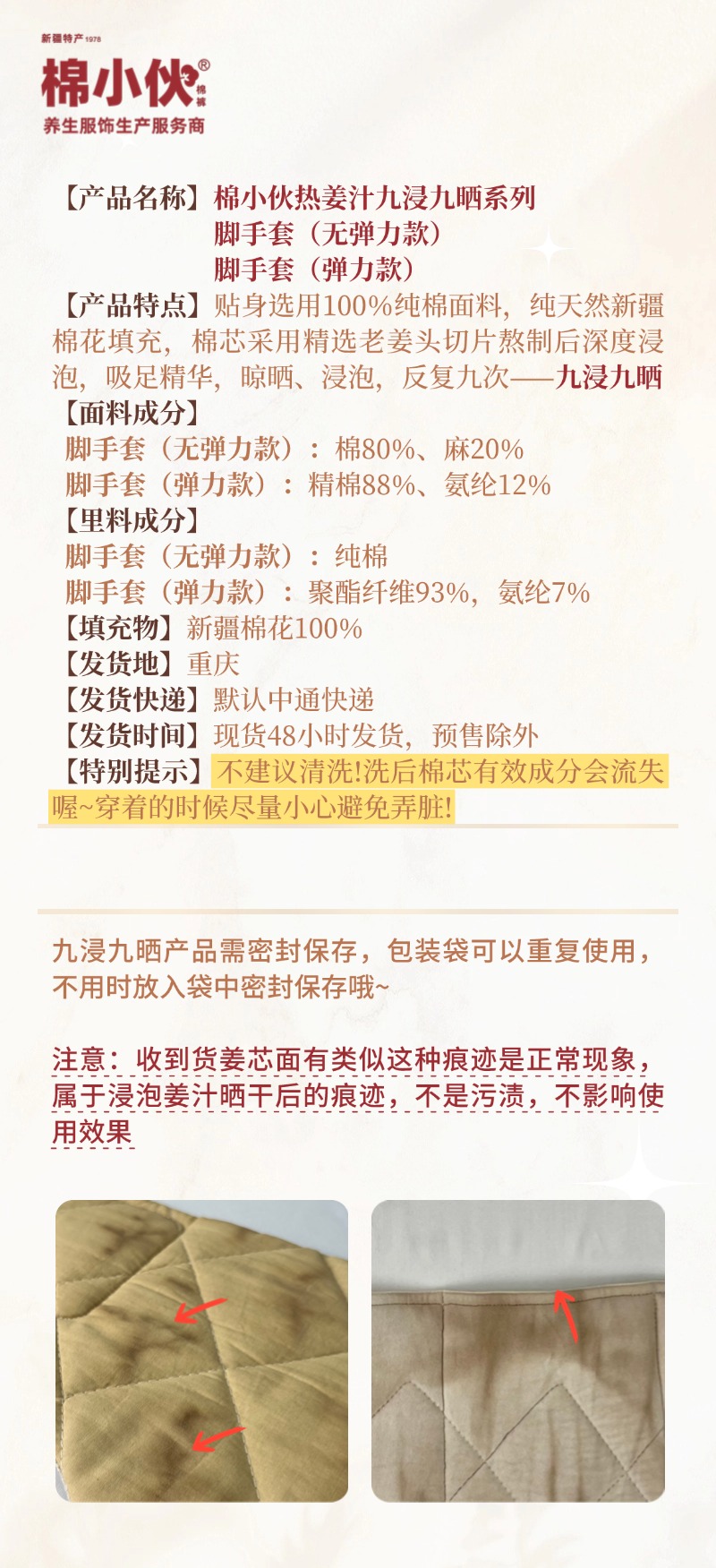 【棉小伙九浸九晒养生服饰 脚手套】弹力款 无弹力款 九九姜芯 护脚踝 护手腕 古法炮制新疆天山晒场 热姜汁浸泡 至日用功拔陈Han 男女同款 重庆仓