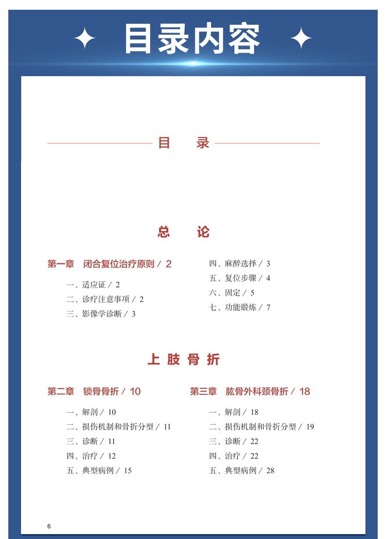 闭合复位技术需要骨科医师接受更多的训练,需要了解骨折移位的机制,了解肌肉附丽对骨折断端的牵拉作用,熟练掌握复位技巧,才能取得良好的治疗效果。参与本书编写的作者都具有丰富的临床经验,本书内容基于作者的实践经验,特别着重介绍了近年来闭合复位的新技术。本书配以大量图片,图文并茂,并附有典型病例,利于读者学习理解。本版增加了一些闭合复位技术要点:如何在术前判断出骨折远近端旋转移位及移位方向和程度;如何在不用暴力牵引下整复长管状骨骨折等要点供读者参考。还增加了一章“少年儿童四肢长管状骨(肱骨、股骨、胫腓骨)骨折”,介绍以闭合复位配合弹性钉内固定的治疗方法。