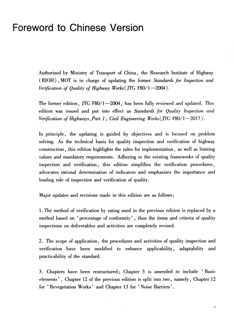 公路工程质量检验评定标准 第一册 土建工程(英文版)
