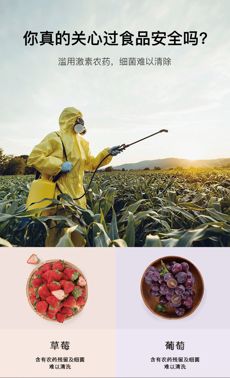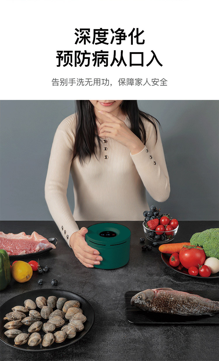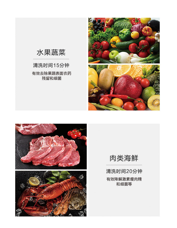 洗菜机果蔬清洗解毒机去农残肉类杀菌消毒食材净化机HJ-F701L白色