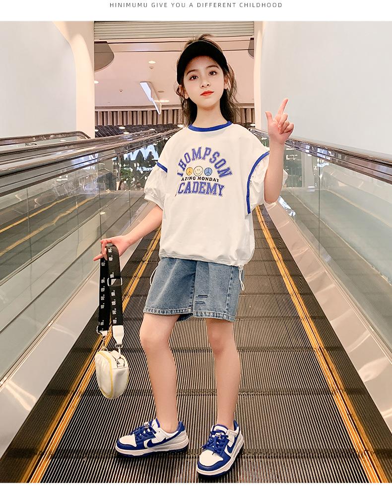 女童夏装短袖T恤2023新款洋气童装半袖女孩大童棉质儿童上衣夏季