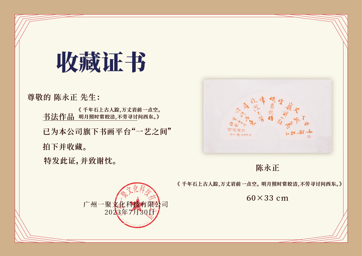 陈永正书法33x60CM《千年石上古人踪,万丈岩前一点空。 明月照时常皎洁,不劳寻讨问西东》1.78平尺手写纸本宣纸作品[原作编号:SF0692]