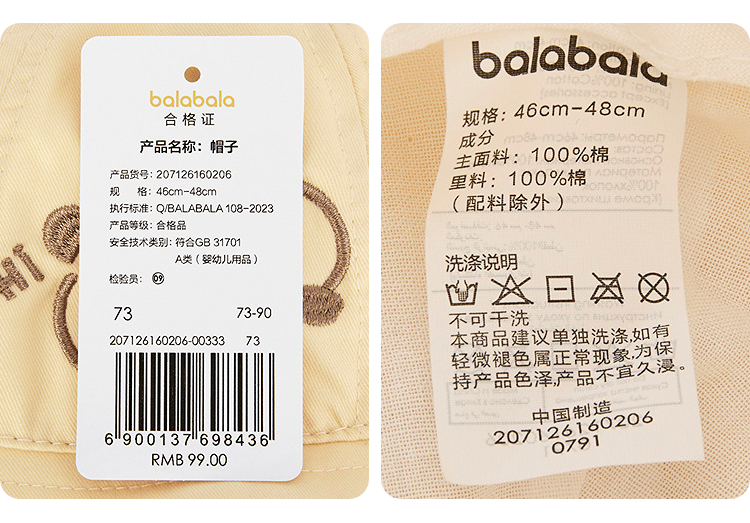 【商场同款】巴拉巴拉儿童帽子男女童2026年新款婴儿宝宝遮阳可爱