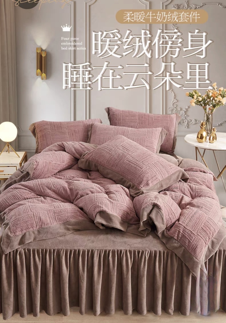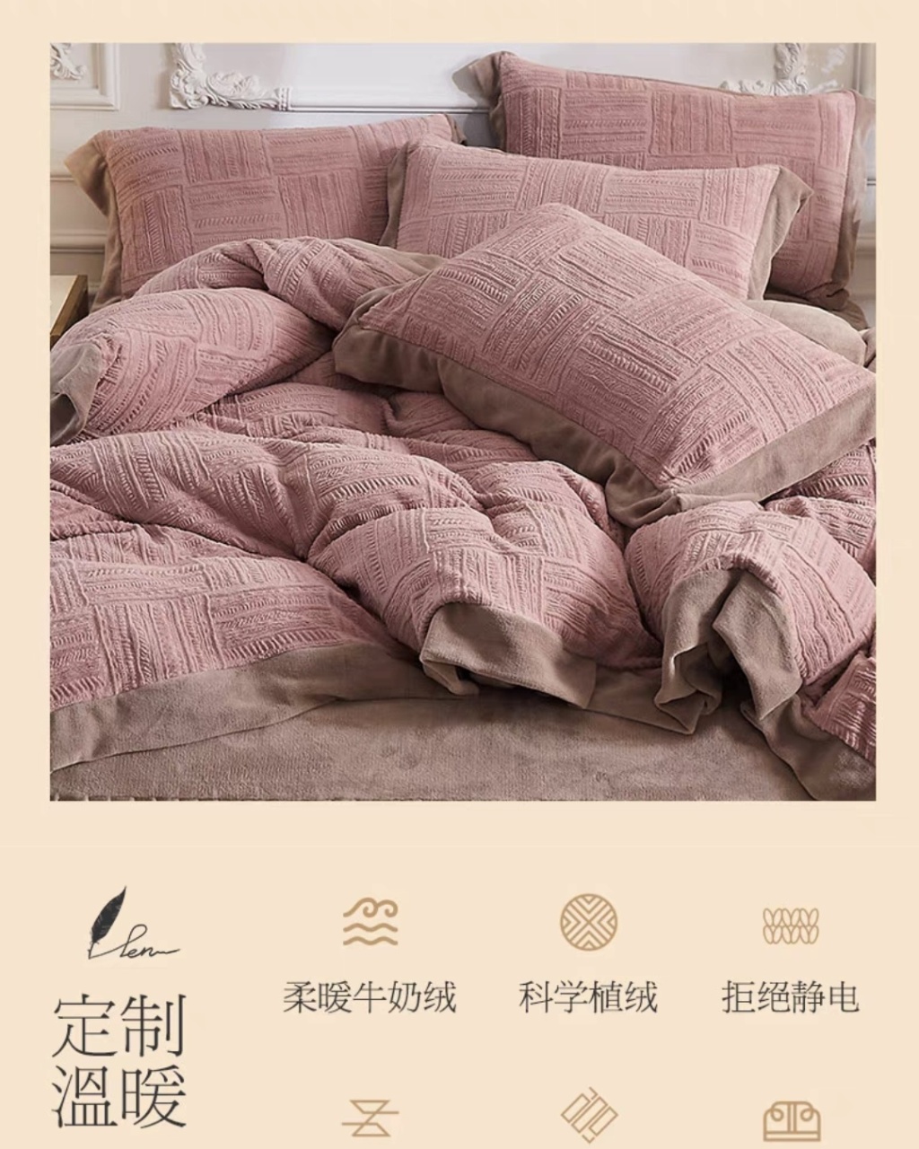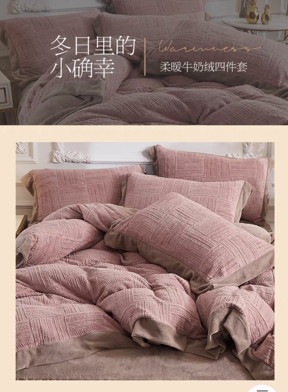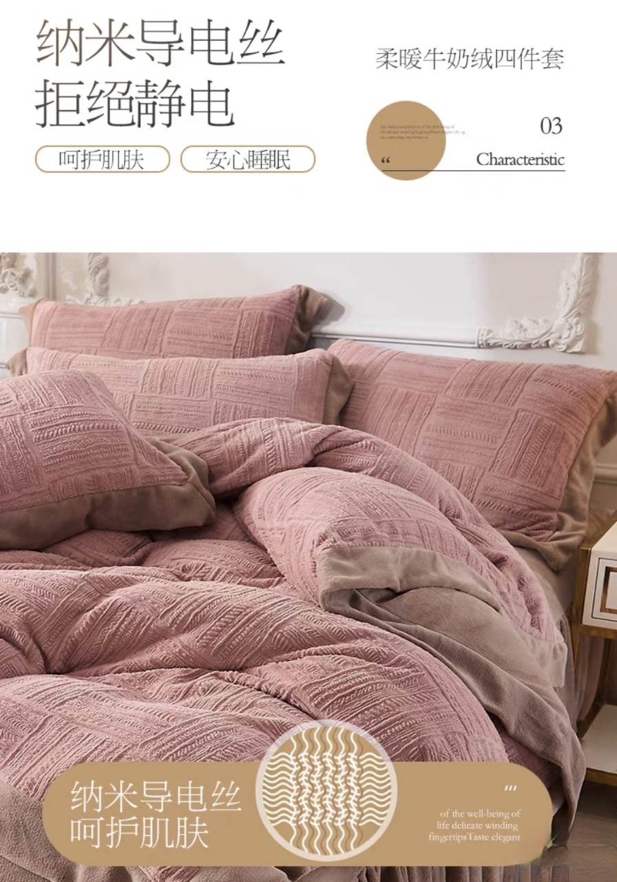 冬季双面加厚保暖暖心牛奶绒被套床单四件套G110700001