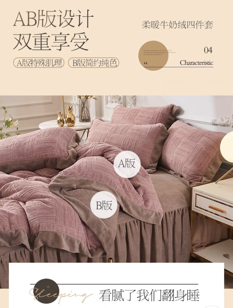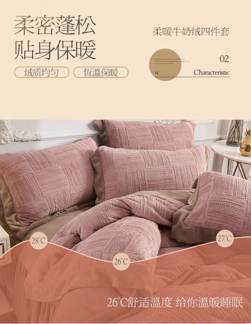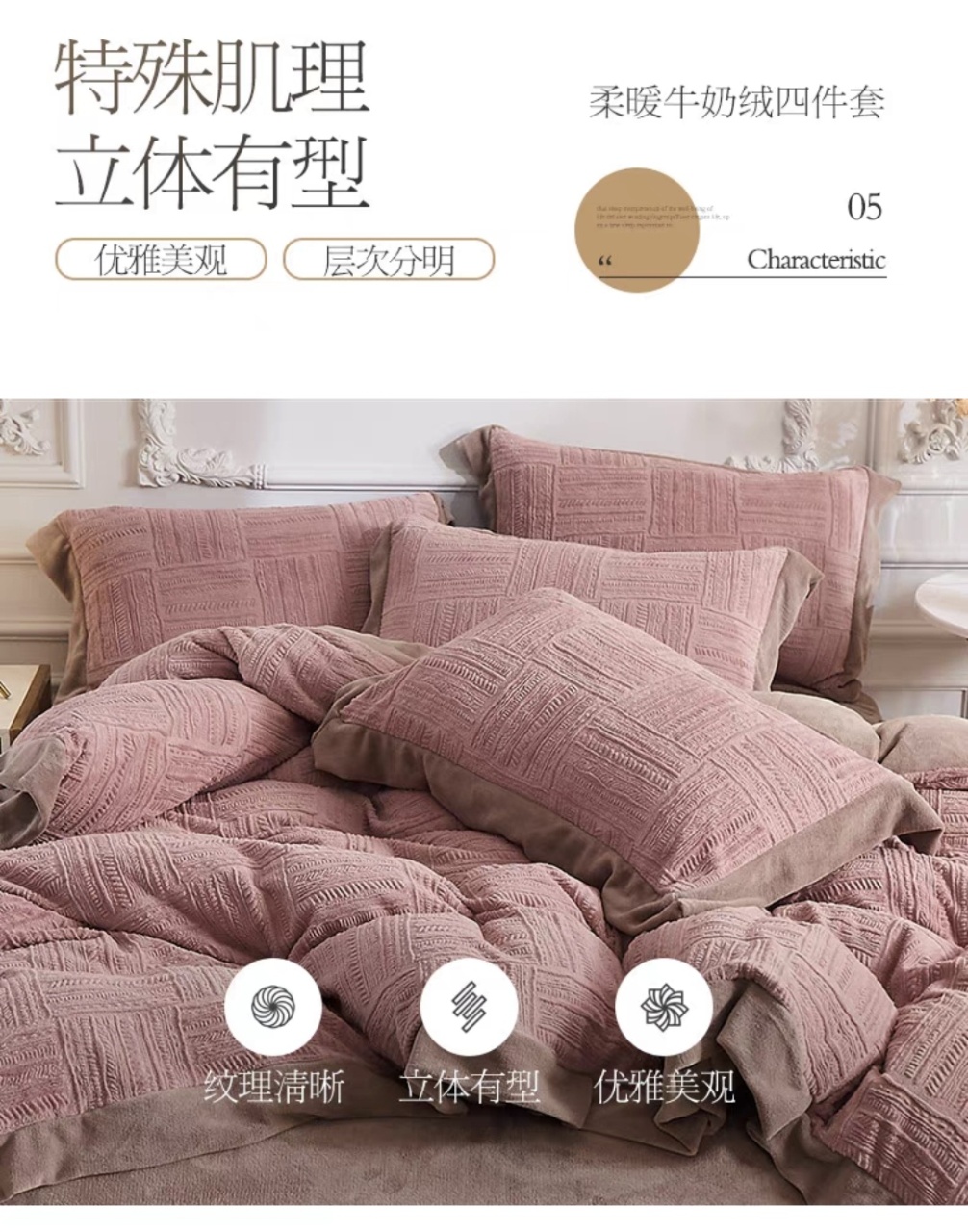 冬季双面加厚保暖暖心牛奶绒被套床单四件套G110700001