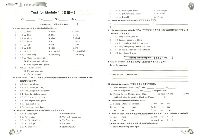 2020上海名校名卷 英语N版 3年级上册/三年级第一学期 上海牛津版英语教材配套教辅 单元测试卷期中期末测试卷 华东师范大学出版社
