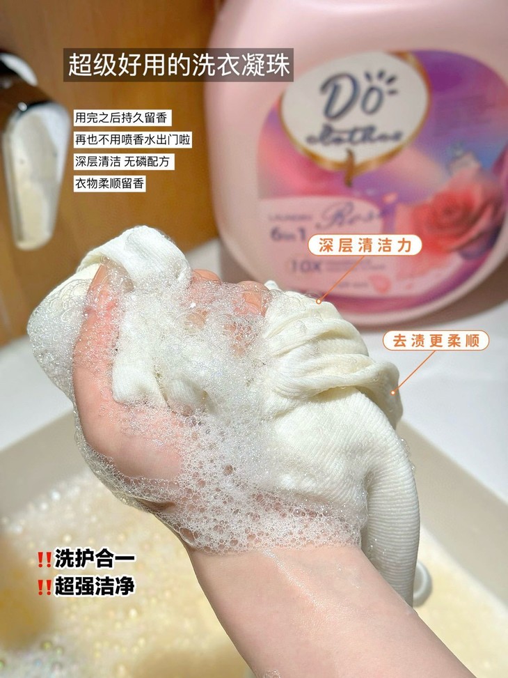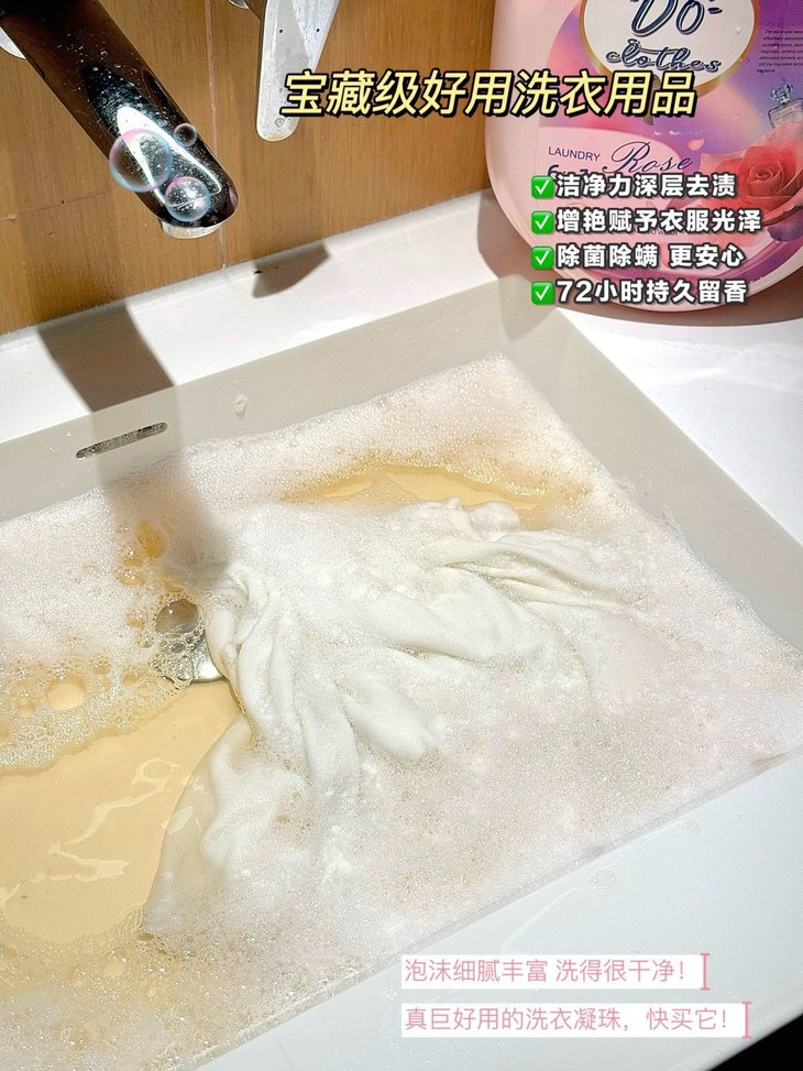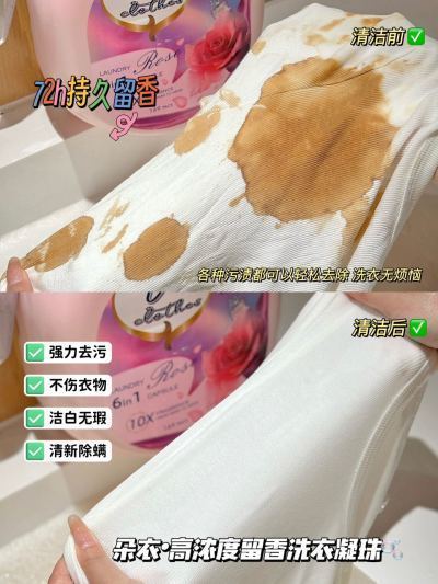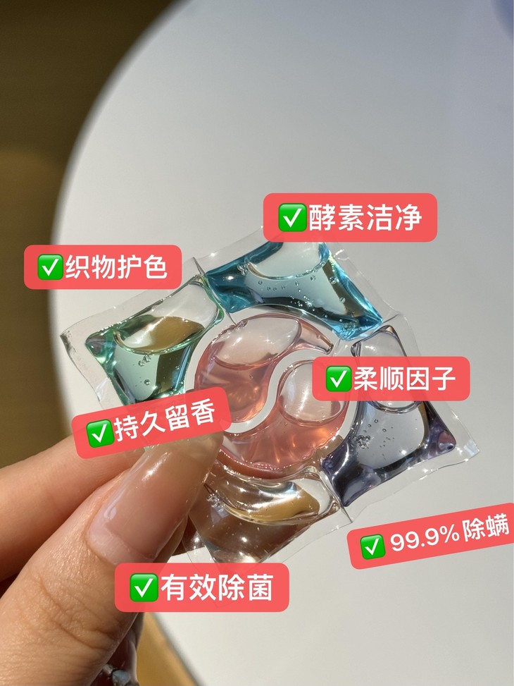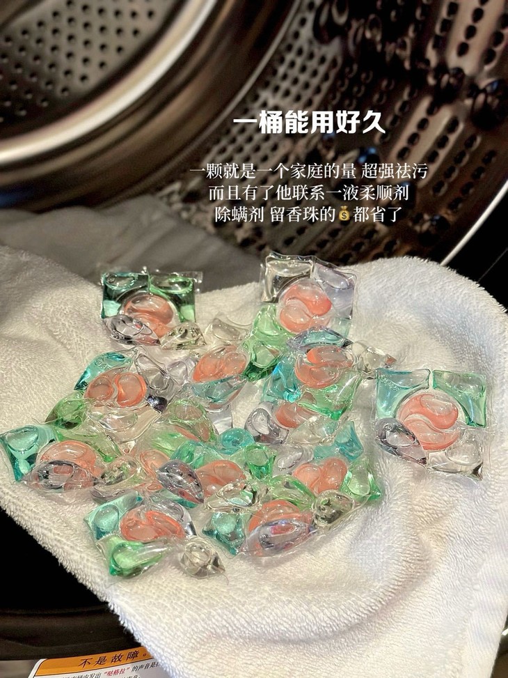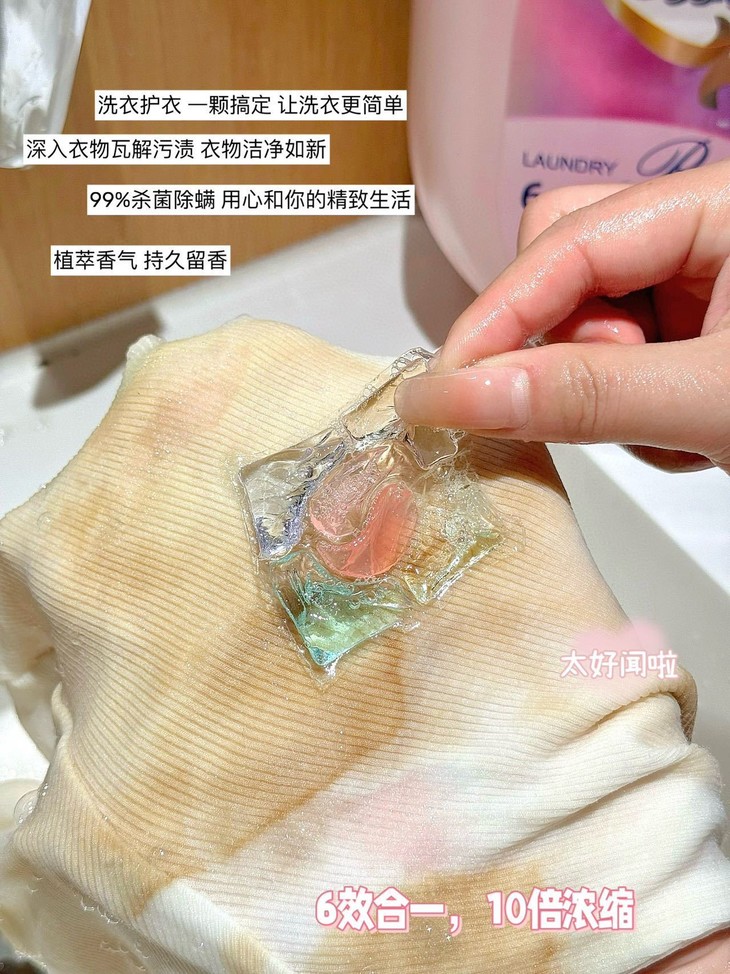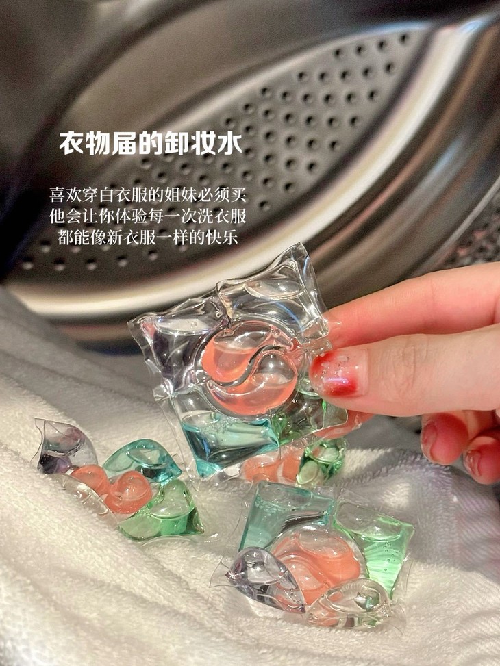 清洁、柔顺、留香、护衣、抑菌除螨一步到位 再也不需要洗衣液、柔顺剂、留香珠挨个倒了! 直接往洗衣机里扔颗它就够! 妥妥的懒人神器! 油渍、奶渍、酒渍,细菌、螨虫…… 它都能轻松搞定,还自带柔顺剂效果 越洗越柔软 留香持久 穿在身上3天还有香味!