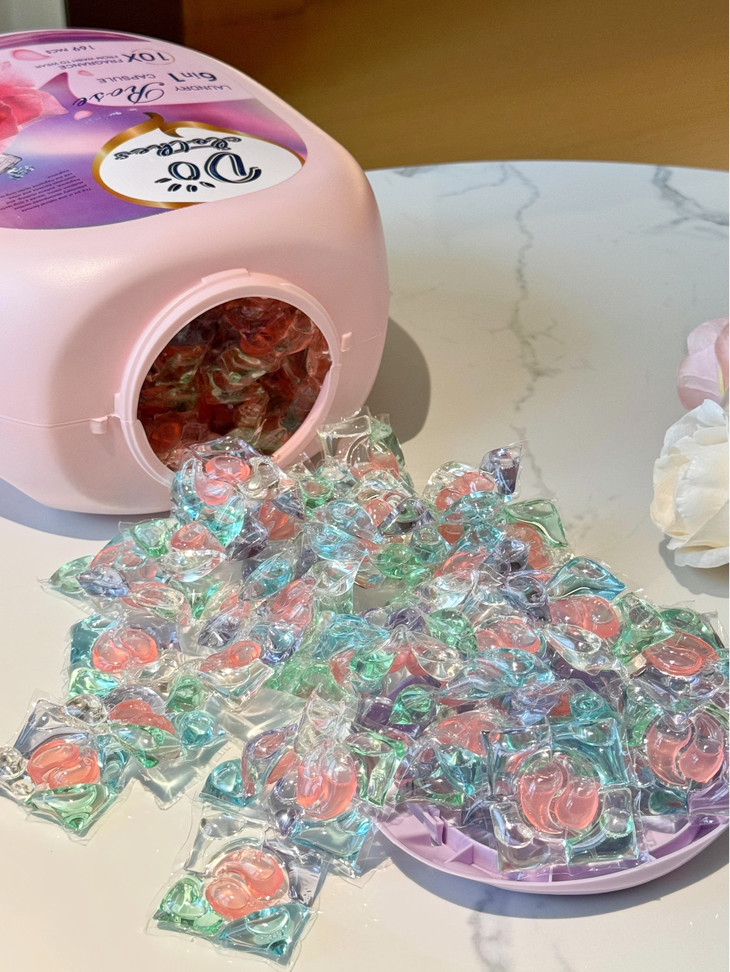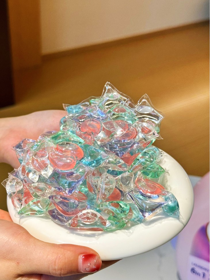 它这满满一大罐,都是小小一颗的 洗衣凝珠保证定量洗衣 洗完保证衣服一直香香的 持久留香 快速去除污渍 发自内心的觉得便捷和好用~