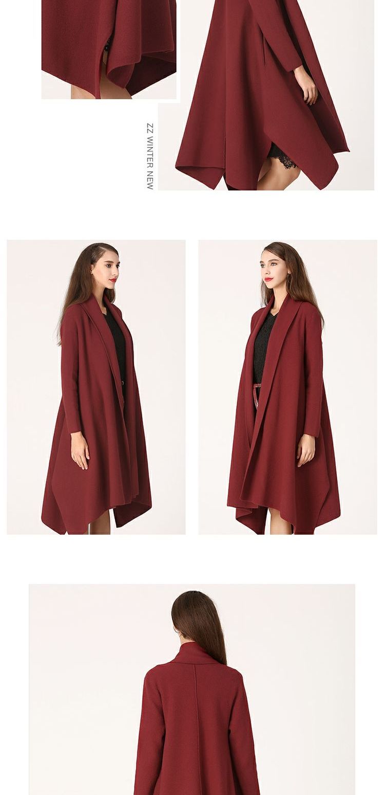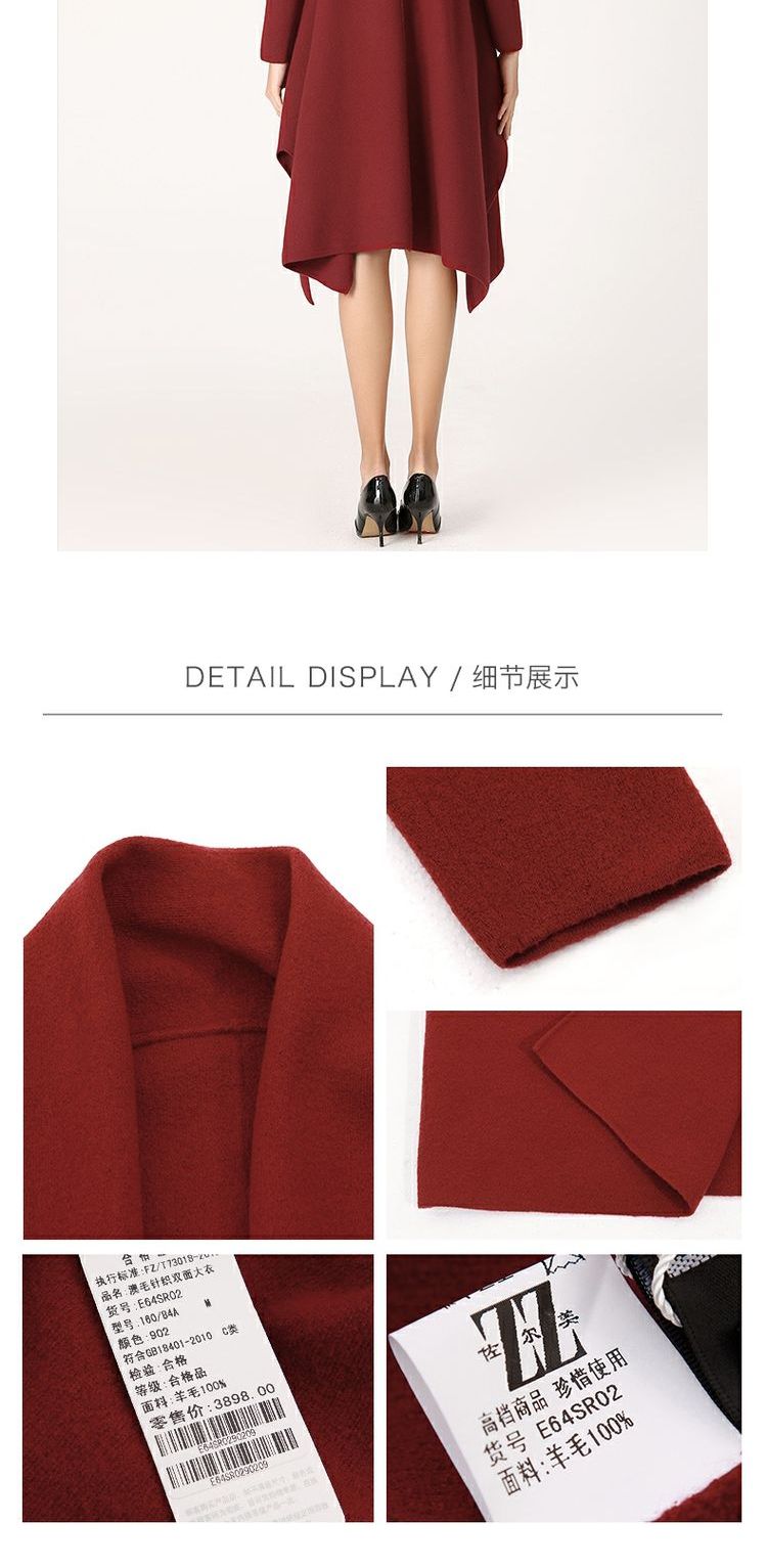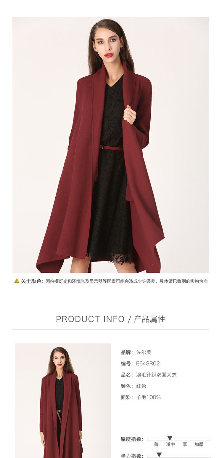 佐尔美冬季女装纯色百搭针织羊毛呢子大衣外套双面呢E64SR02