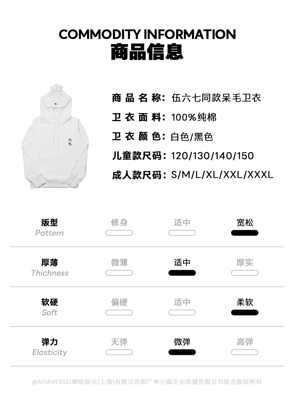 伍六七动画 呆毛纯棉卫衣