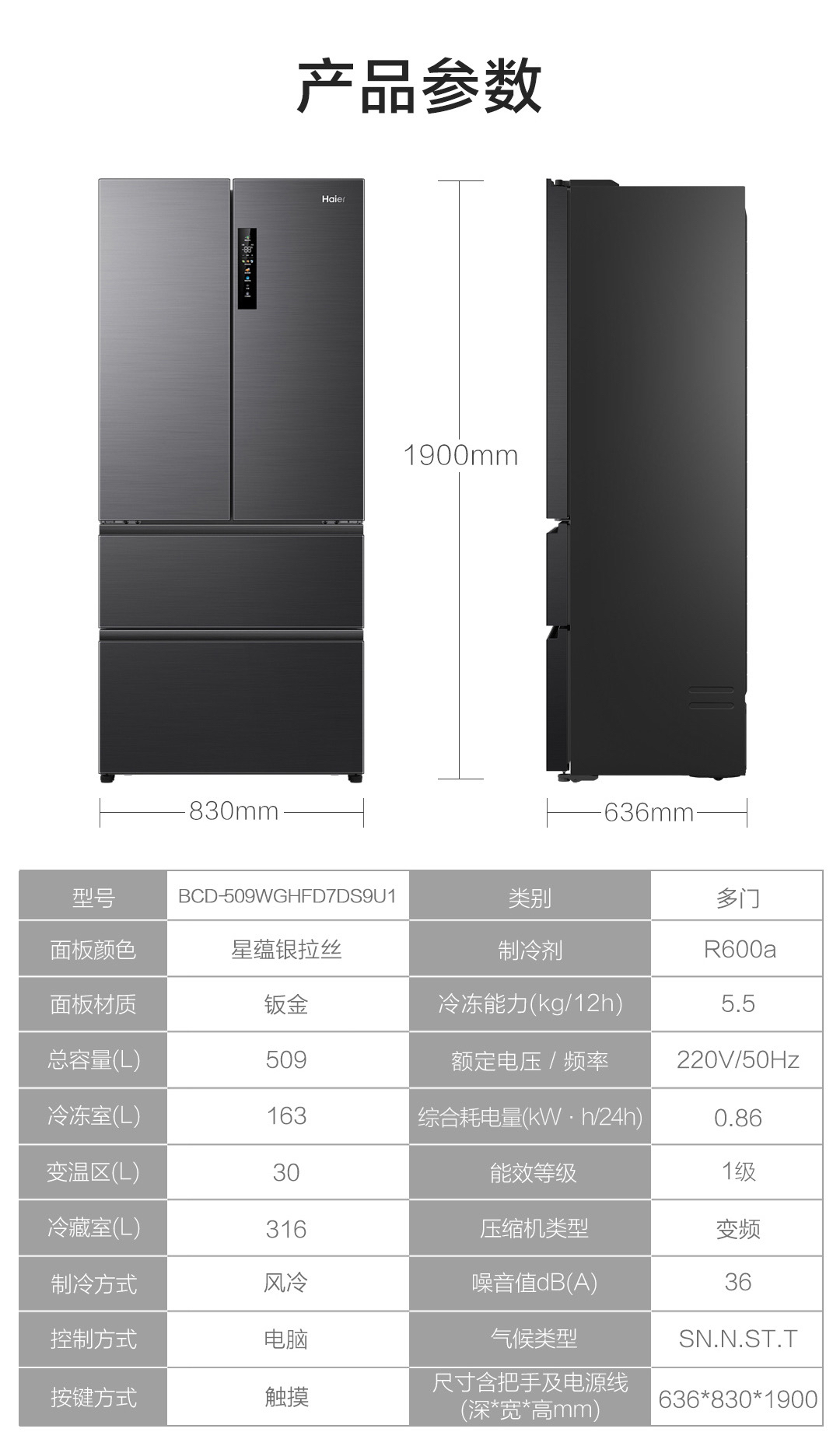 海尔(Haier)冰箱 BCD-509WGHFD7DS9U1