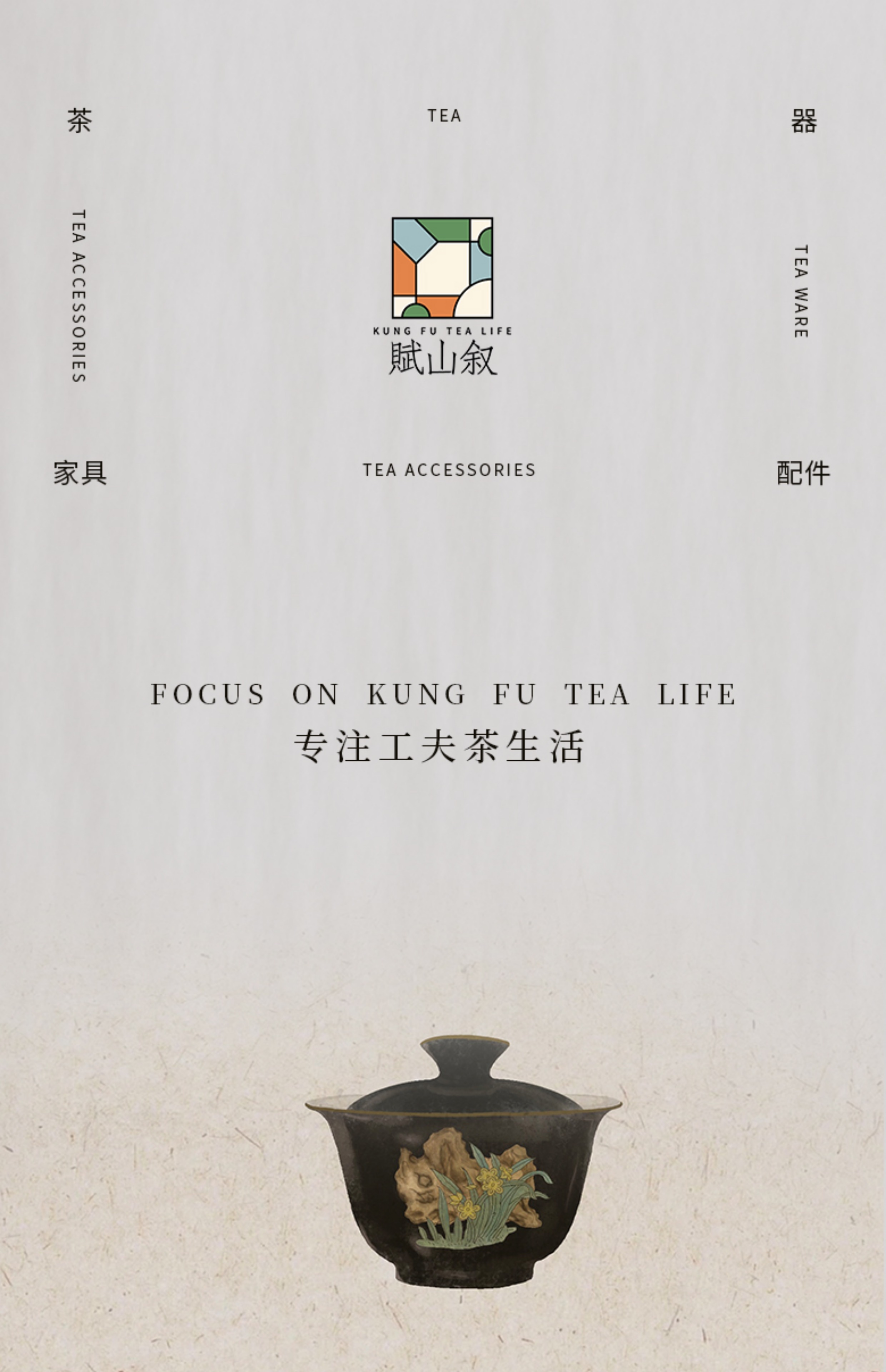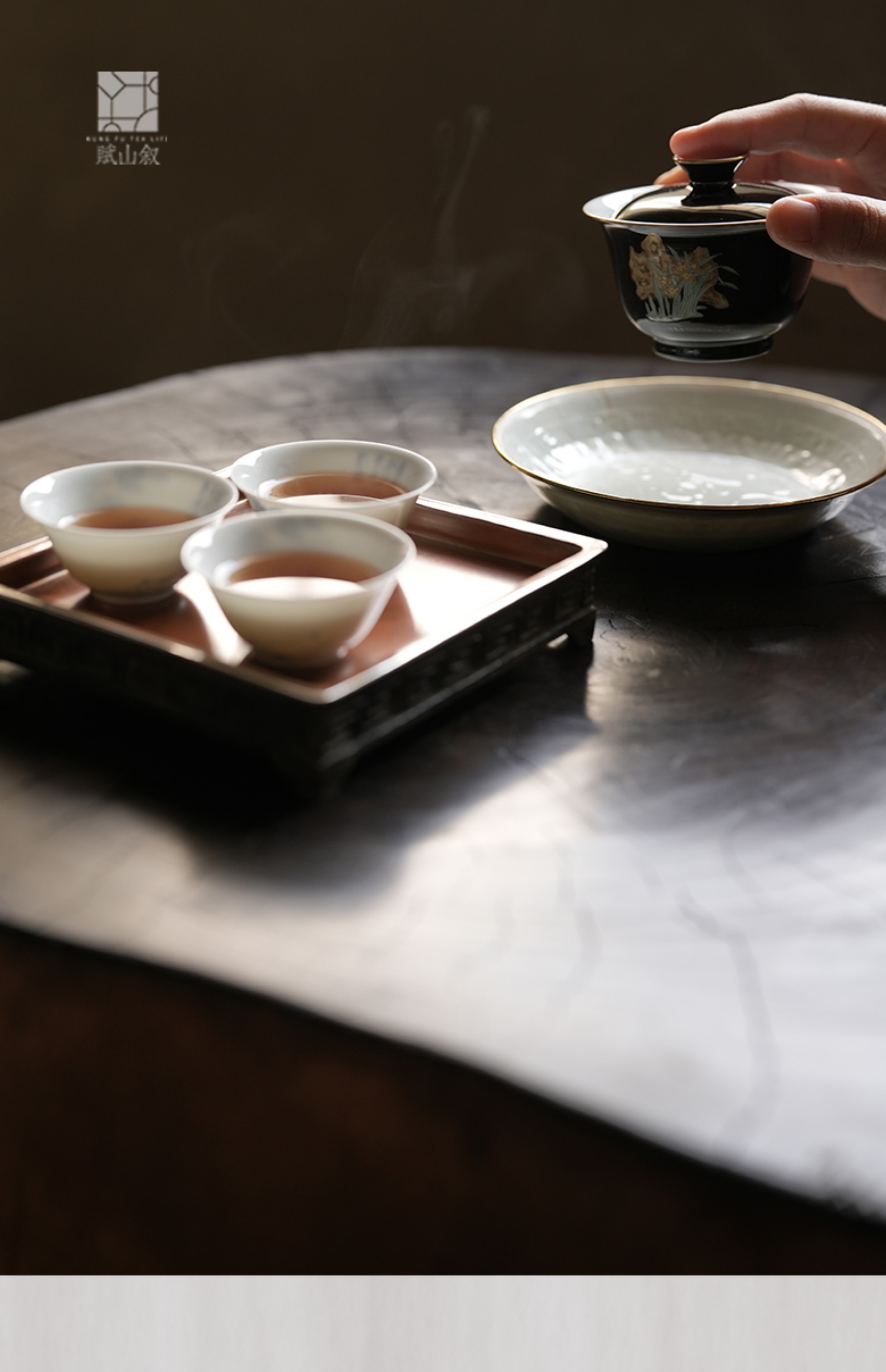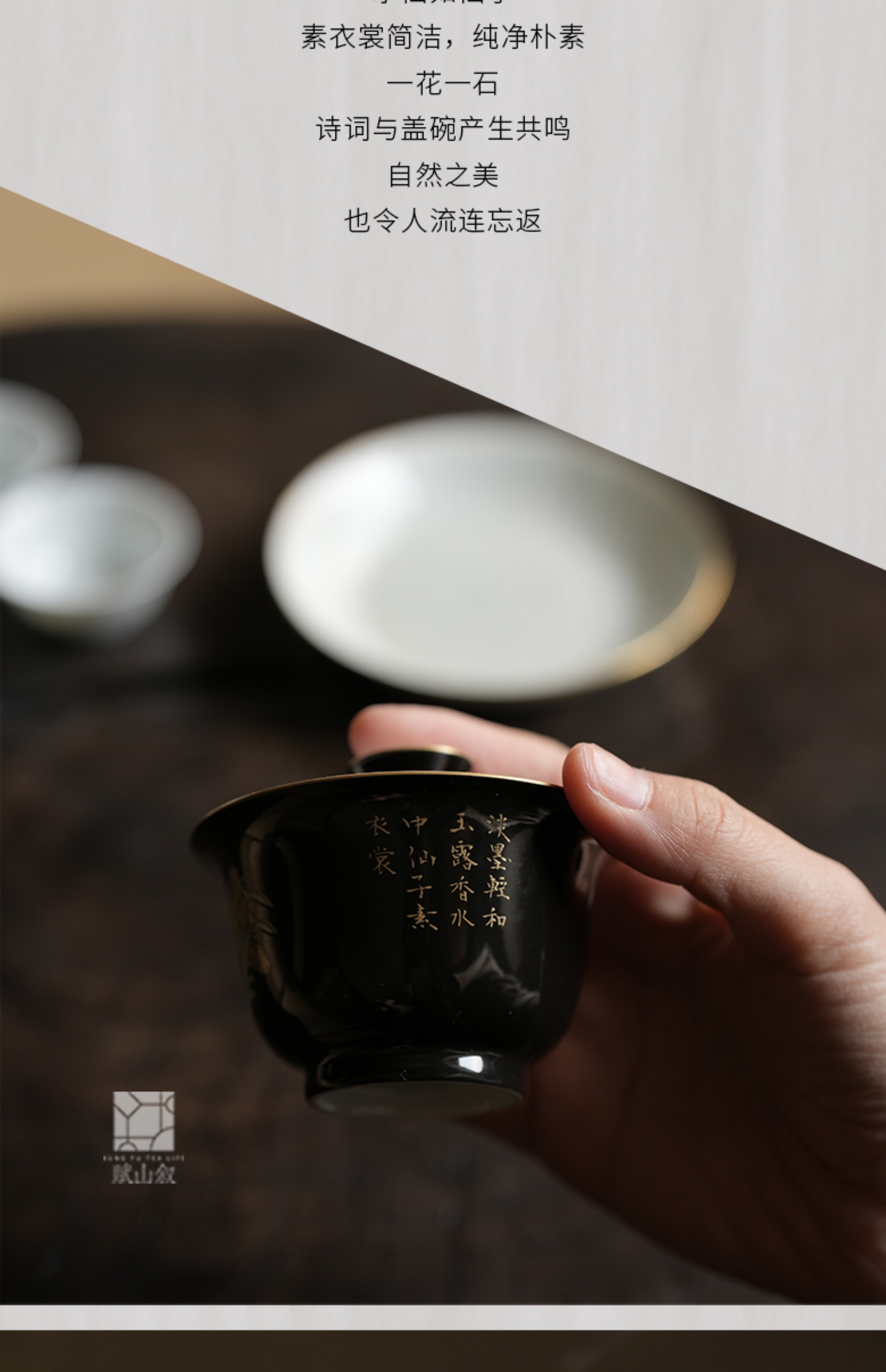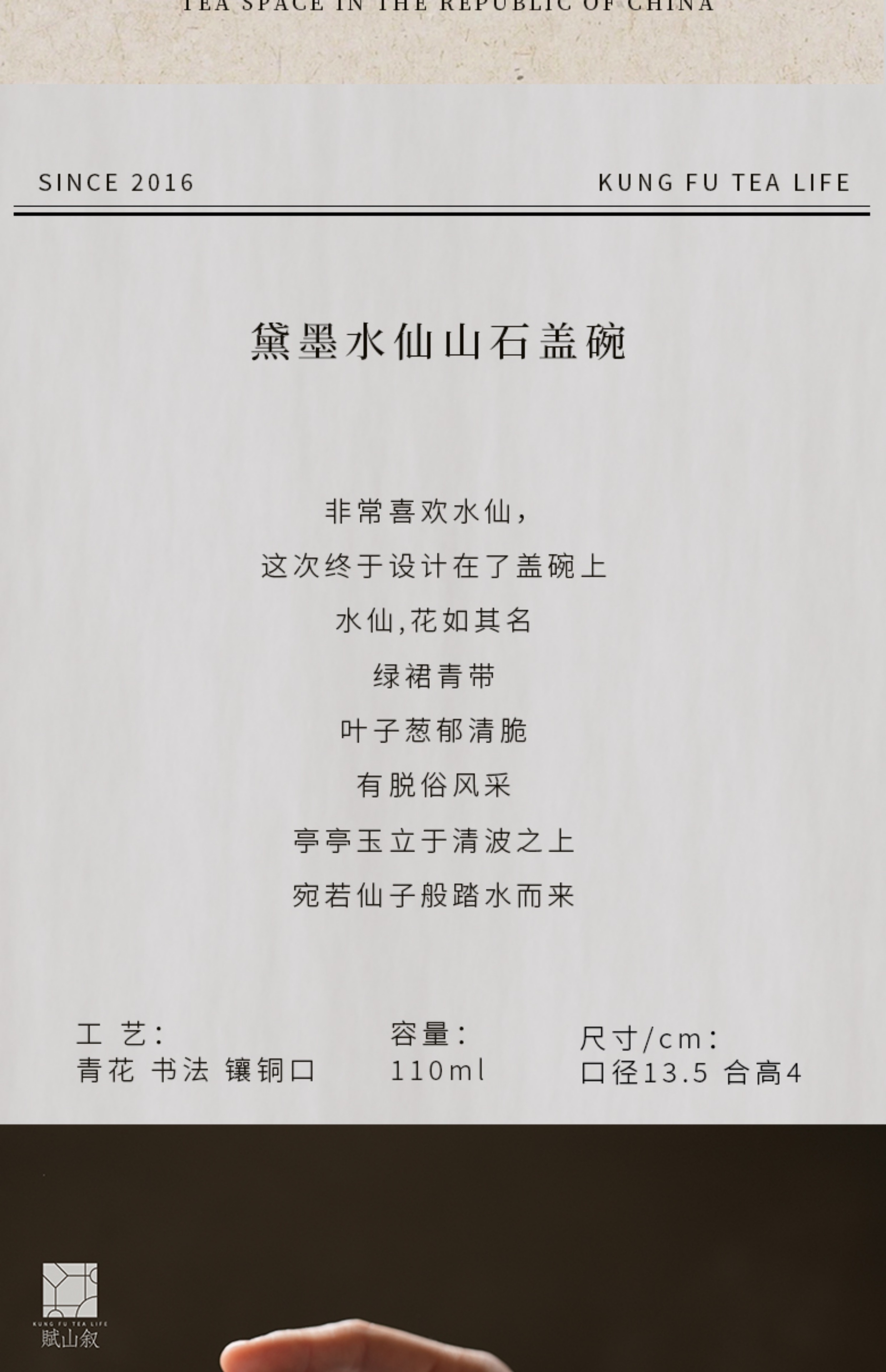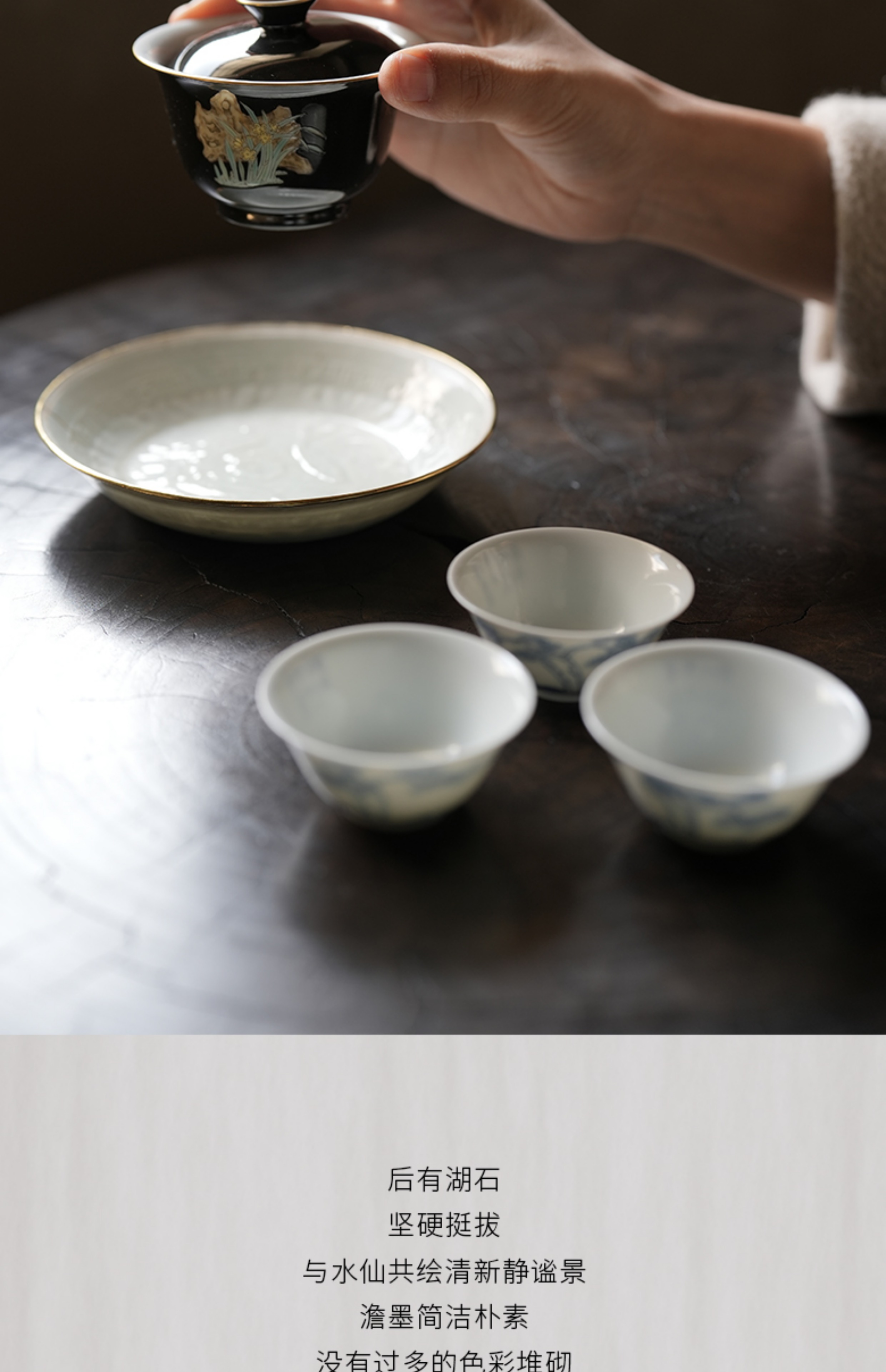 赋山堂丨黛墨水仙山石盖碗单个 景德镇手绘粉彩 功夫茶具 泡茶器