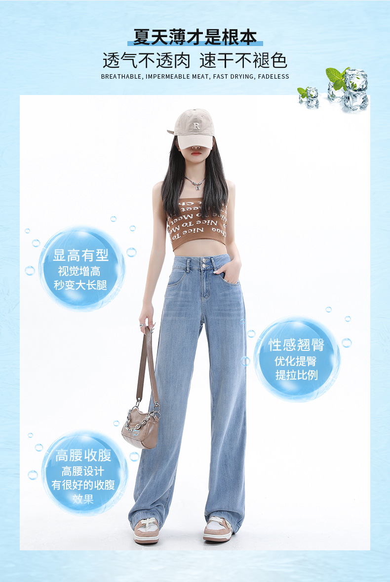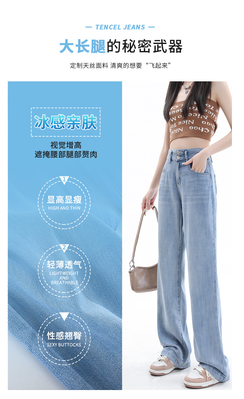 【HEY+JEANS】 窄版天丝港风 牛仔阔腿裤 拖地裤 2205#