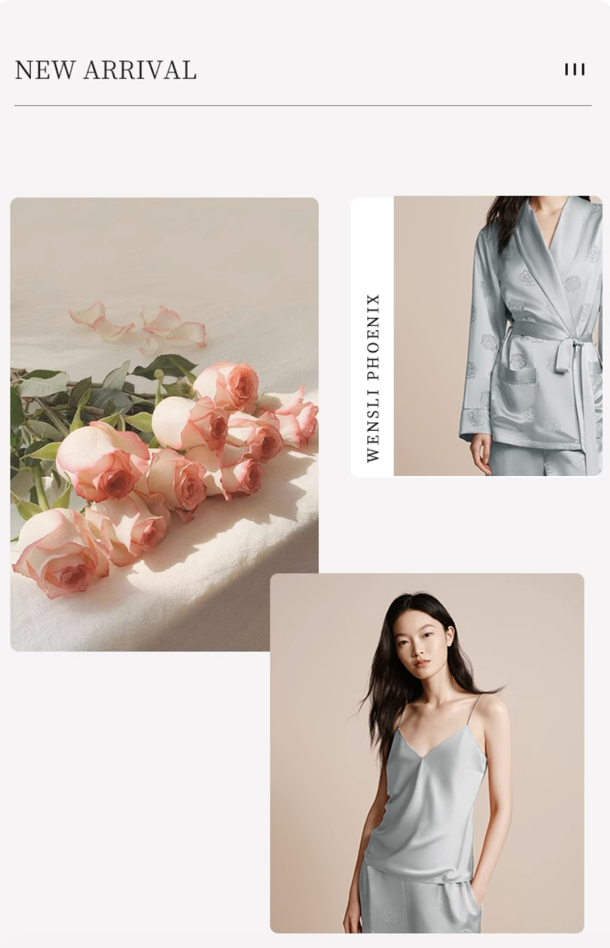 凤凰之家”玫瑰晨露“真丝家居三件套