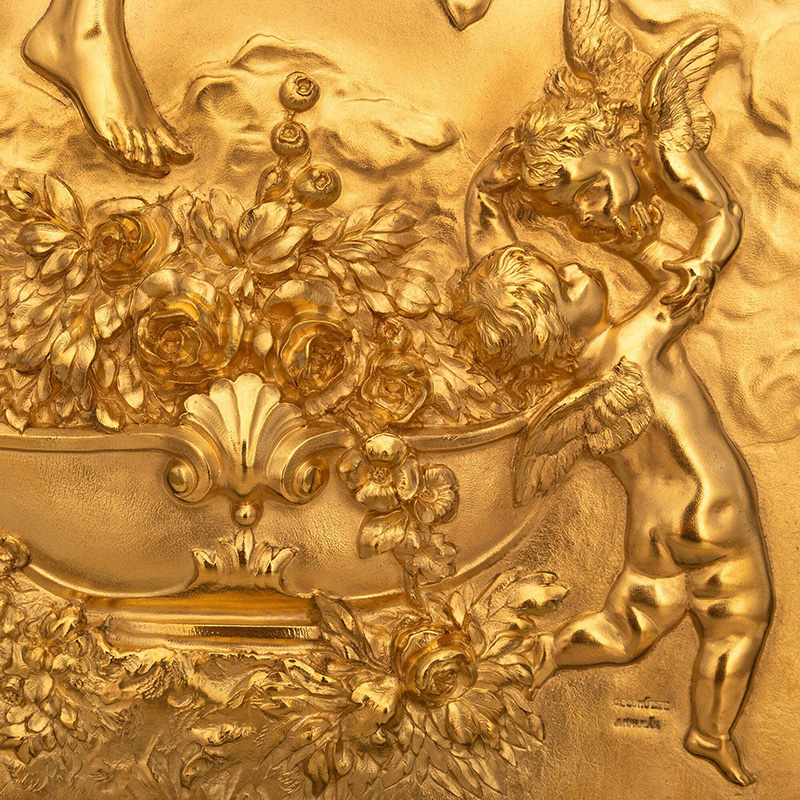 19世纪意大利艺术家Karl Sterrer签名创作铜鎏金浮雕装饰画《日与夜》